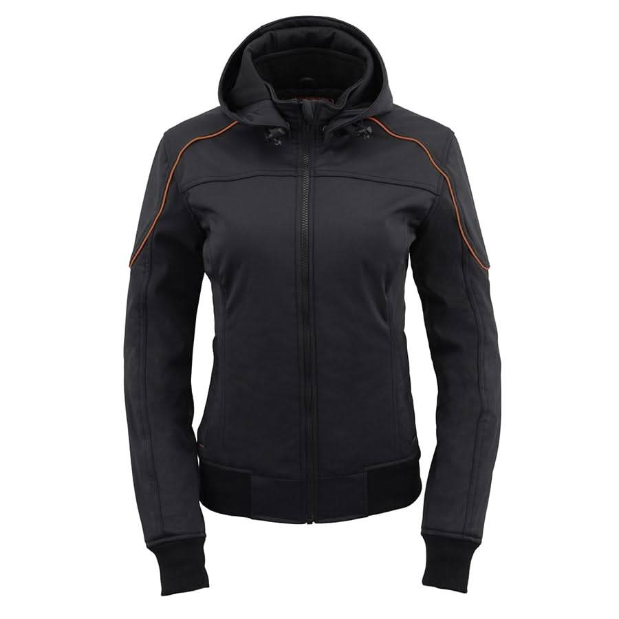 Milwaukee Leather MPL2764 Women's Black Soft Shell Armored Motorcycle Racing Style Jacket with Hoodie