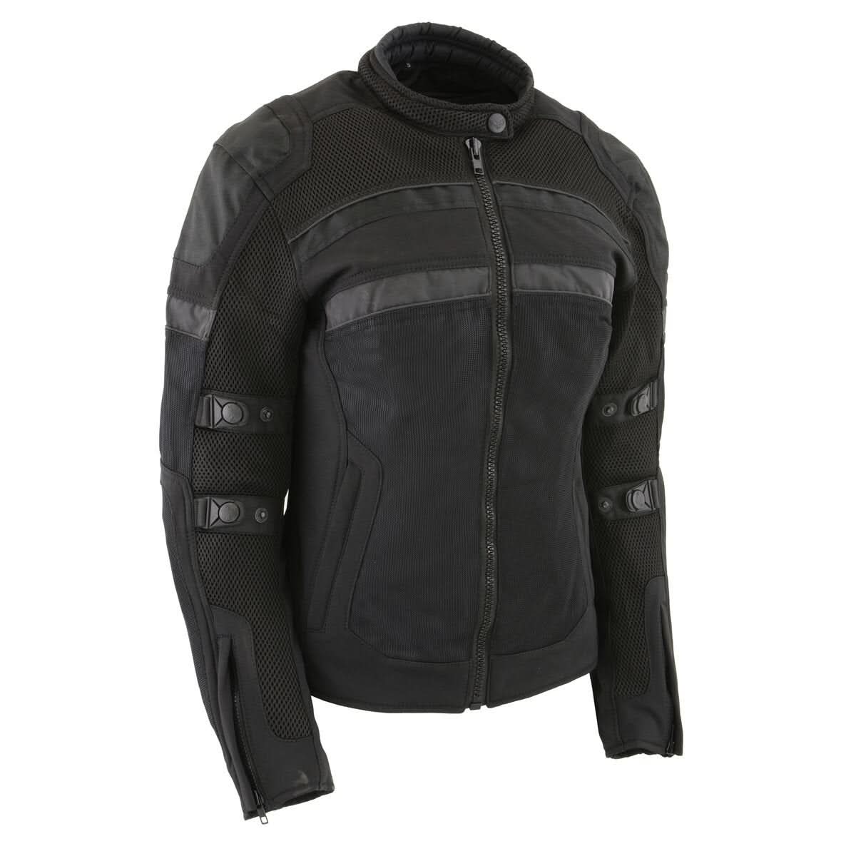 Milwaukee Leather MPL2775 Black Armored Textile Motorcycle Jacket for Women - All Season Jacket w/ Removable Liner