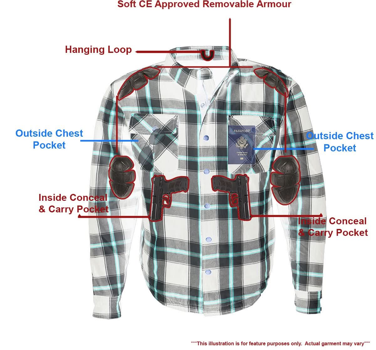 Milwaukee Leather MPM1625 Men's Plaid Flannel Biker Shirt with CE Approved Armor - Reinforced w/ Aramid Fibers