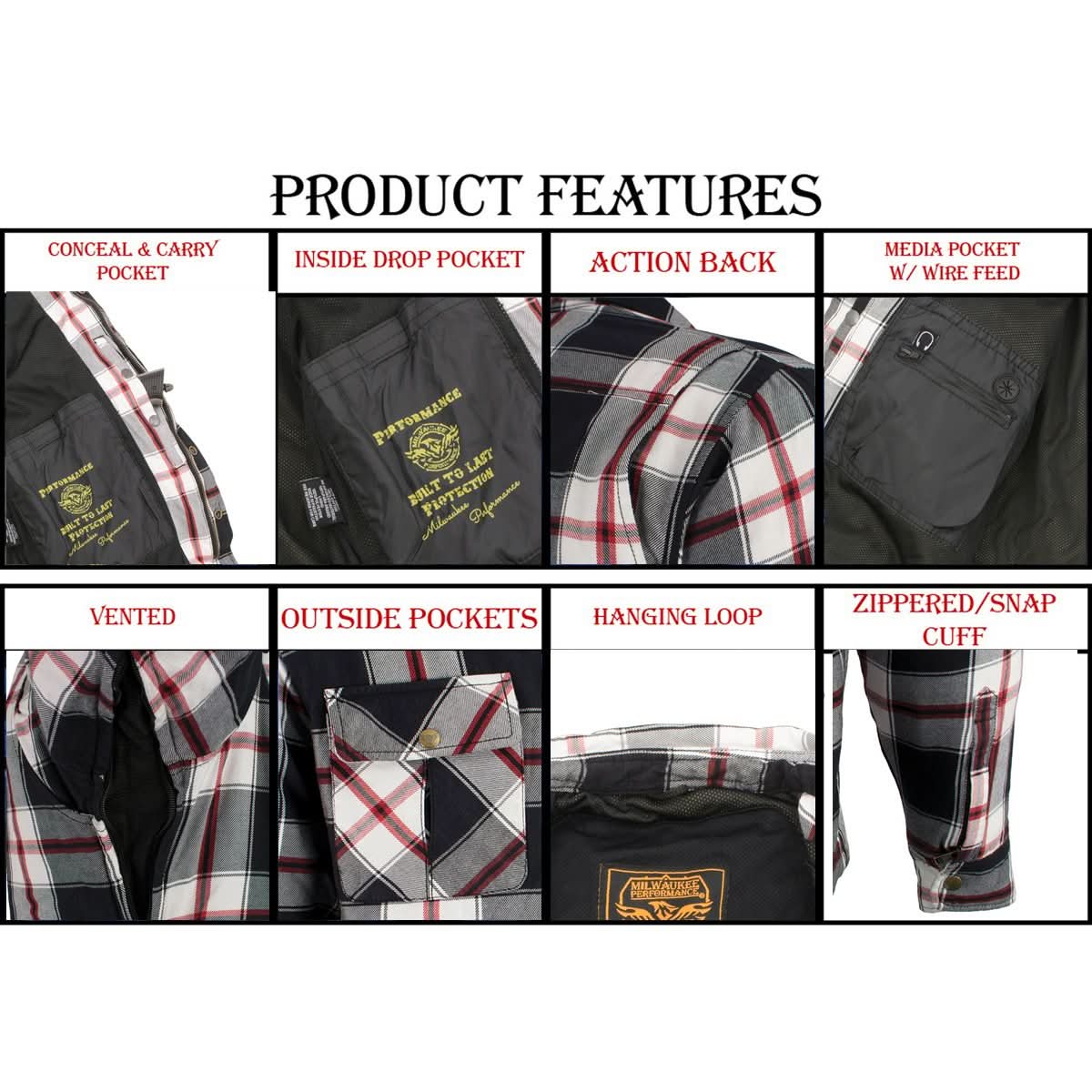 Milwaukee Leather MPM1635 Men's Plaid Flannel Biker Shirt with CE Approved Armor - Reinforced w/ Aramid Fiber