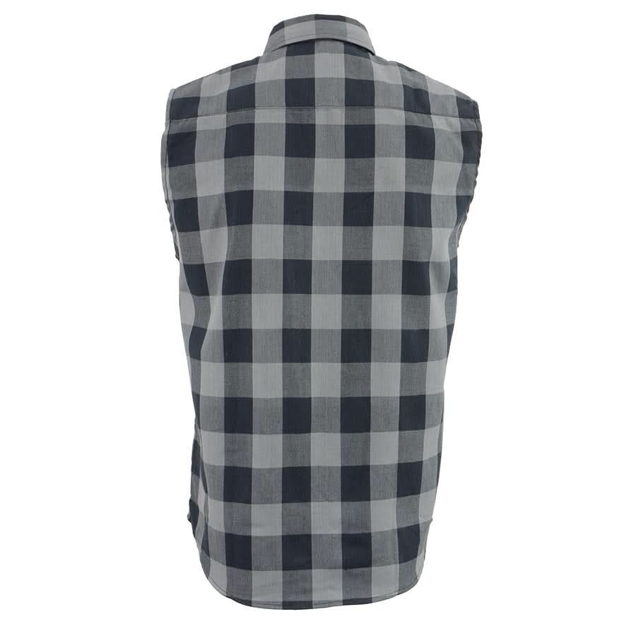 Milwaukee Leather MPM1648 Men’s Classic Black and Grey Button-Down Flannel Cut Off Sleeveless Casual Shirt