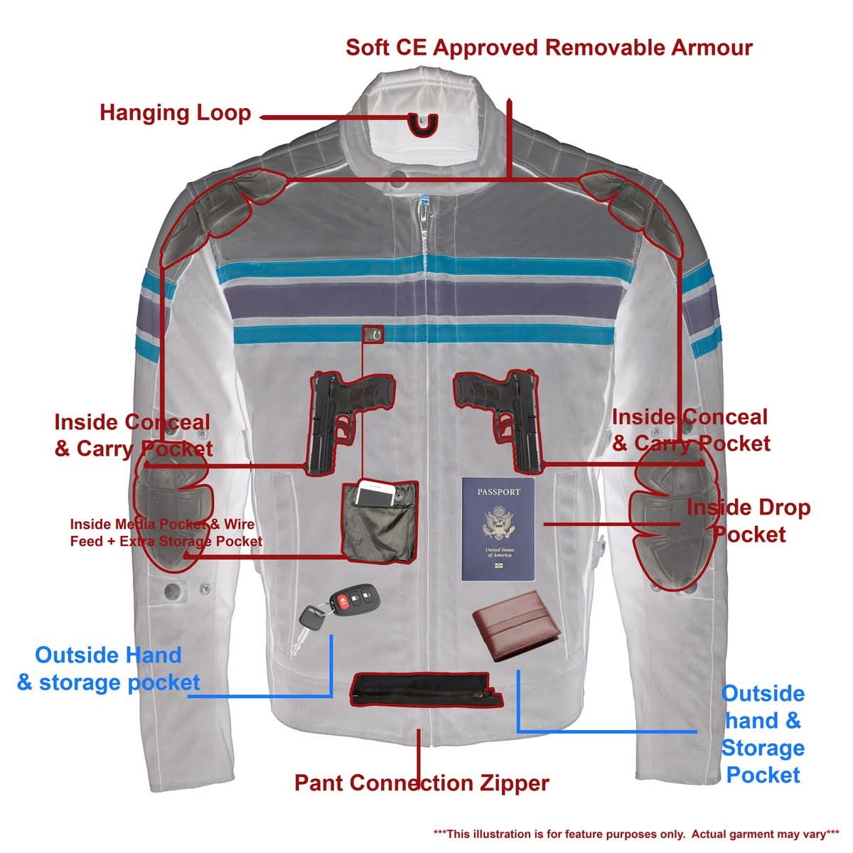 Removable CE Approved Armor o: On Shoulders and Elbows, This High Quality and Energy Absorbing Armor Offers Ideal Protection from Impact That May Occur - Removable CE Approved Armor on Both Shoulders and Elbows (Included)