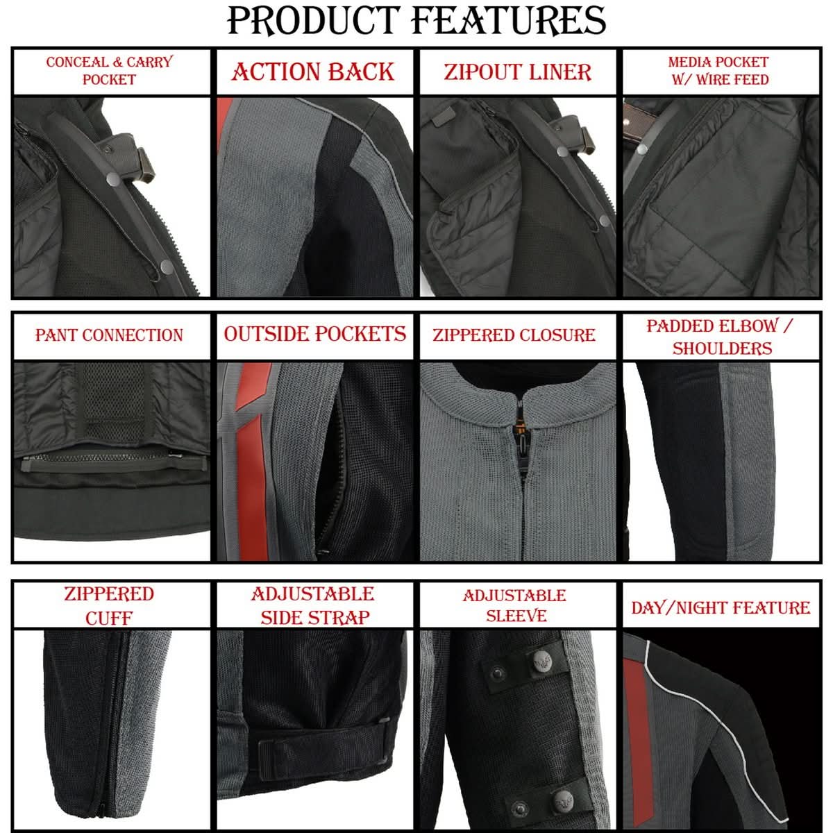 Milwaukee Leather MPM1752 Men's Black/Grey Textile and Mesh Armored Motorcycle Biker Racing Jacket