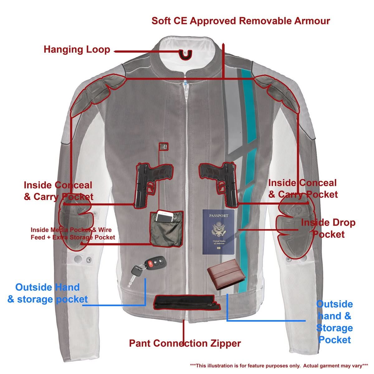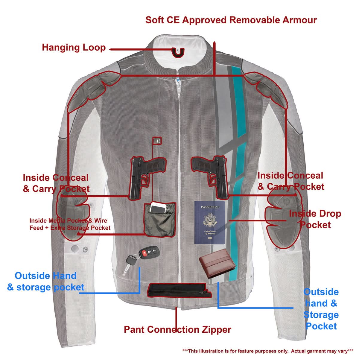 CE Approved Armor: On Shoulders and Elbows | High Quality and Energy Absorbing Armor Offers Ideal Protection from Impact That May Occur - Removable CE Approved Armor on Both Shoulders and Elbows (Included)