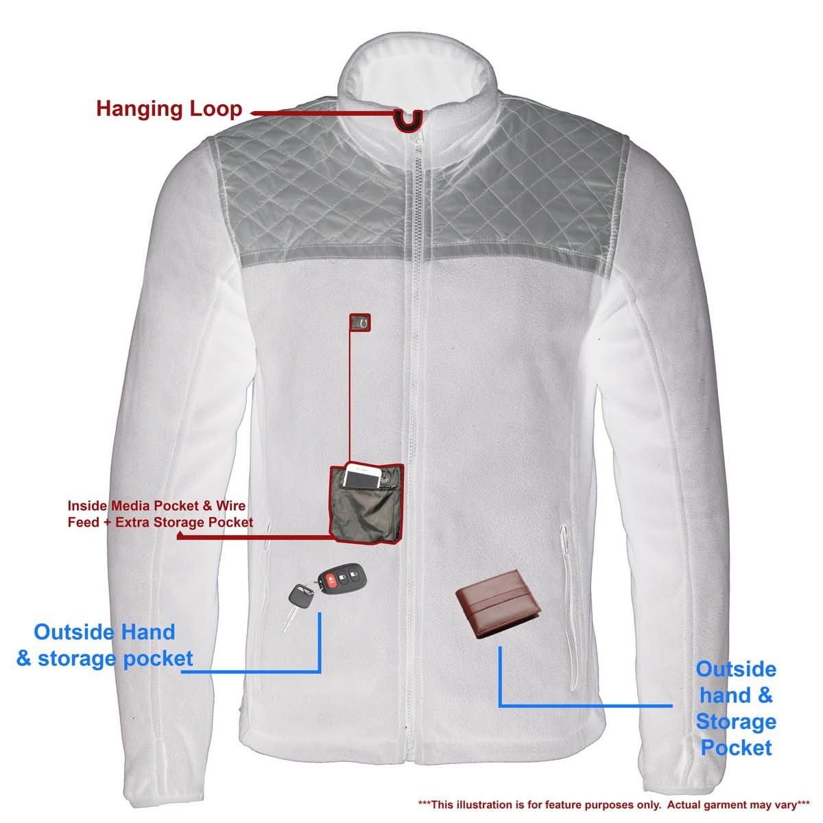 Milwaukee Leather MPM1784 Men's Black Micro Fleece Zipper Front Jacket with Reflective Stripes