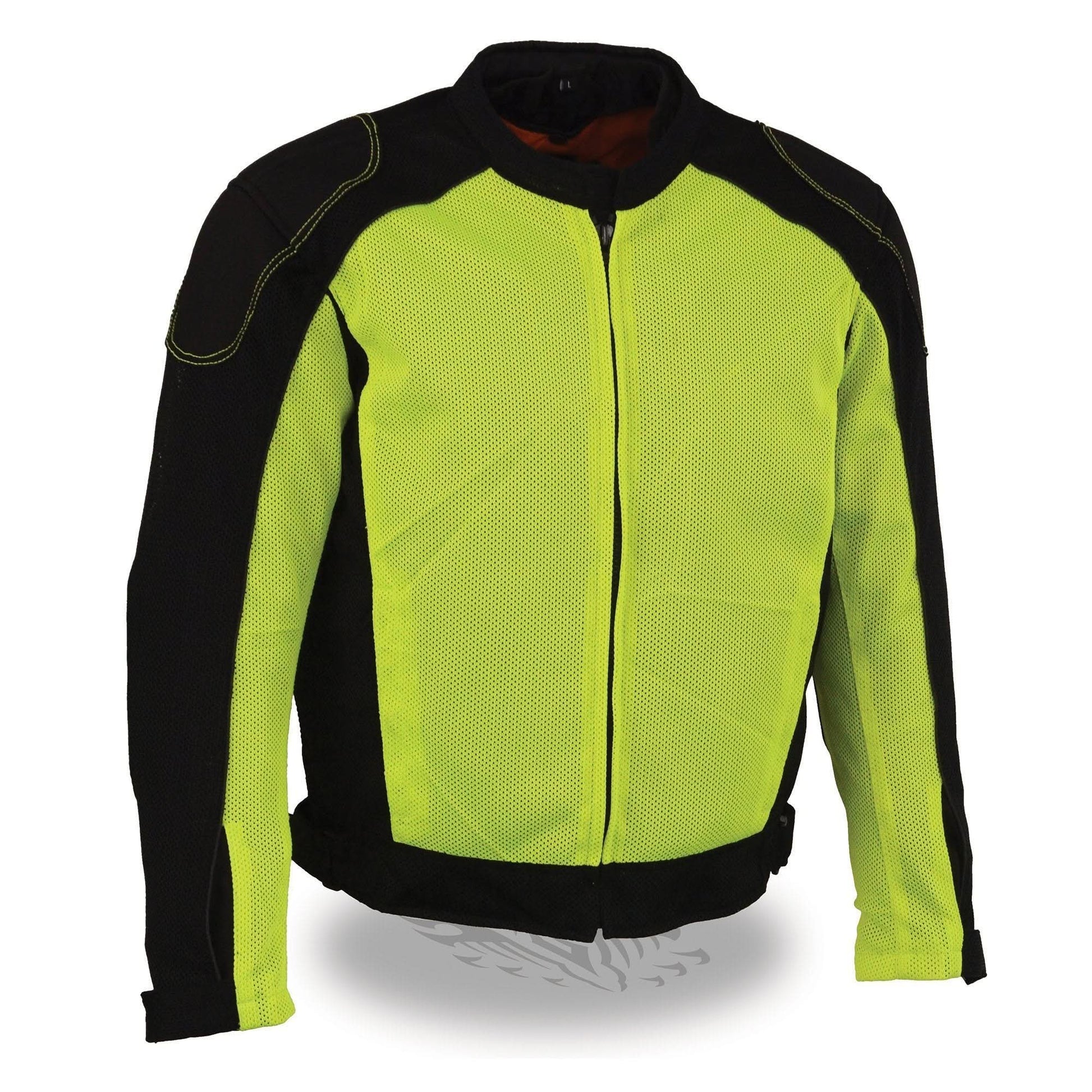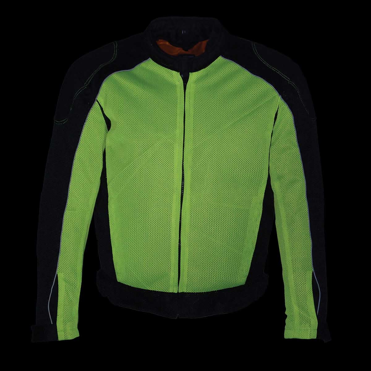 Milwaukee Leather MPM1790 Men's Black and Neon Green Hi Vis Mesh Racer Armored Jacket with Removable Rain Jacket