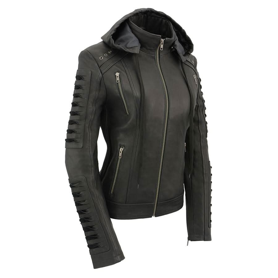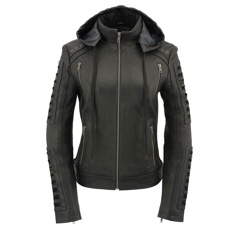 Milwaukee Leather SFL2865 Women's Black Scuba Style Fashion Casual Leather Jacket with Hoodie