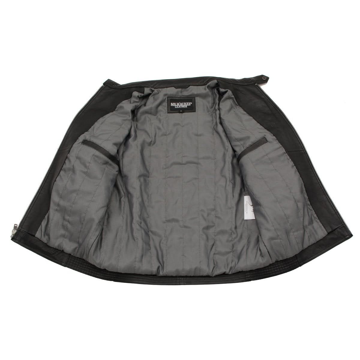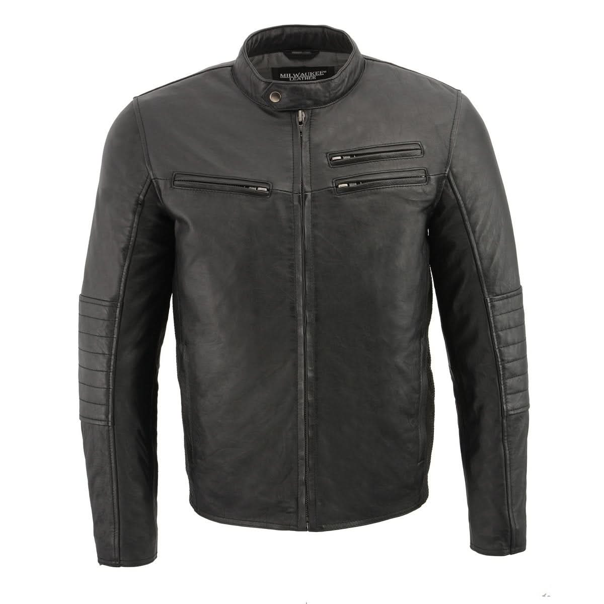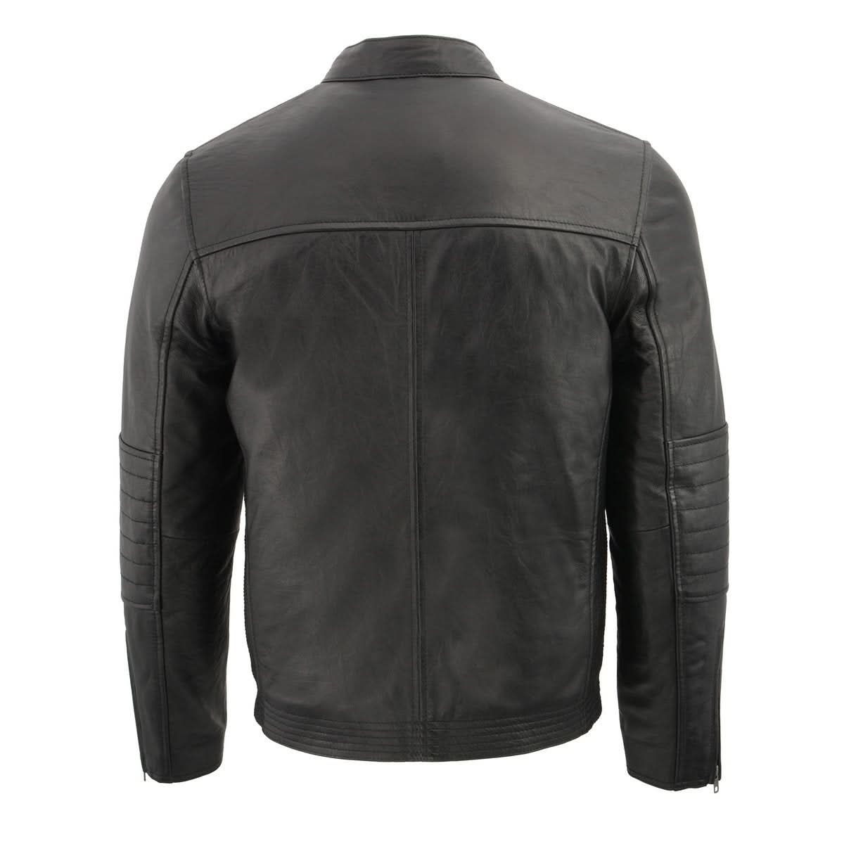 Milwaukee Leather SFM1806 Men's Black Euro Collar Café Motorcycle Jacket with Side Stitch
