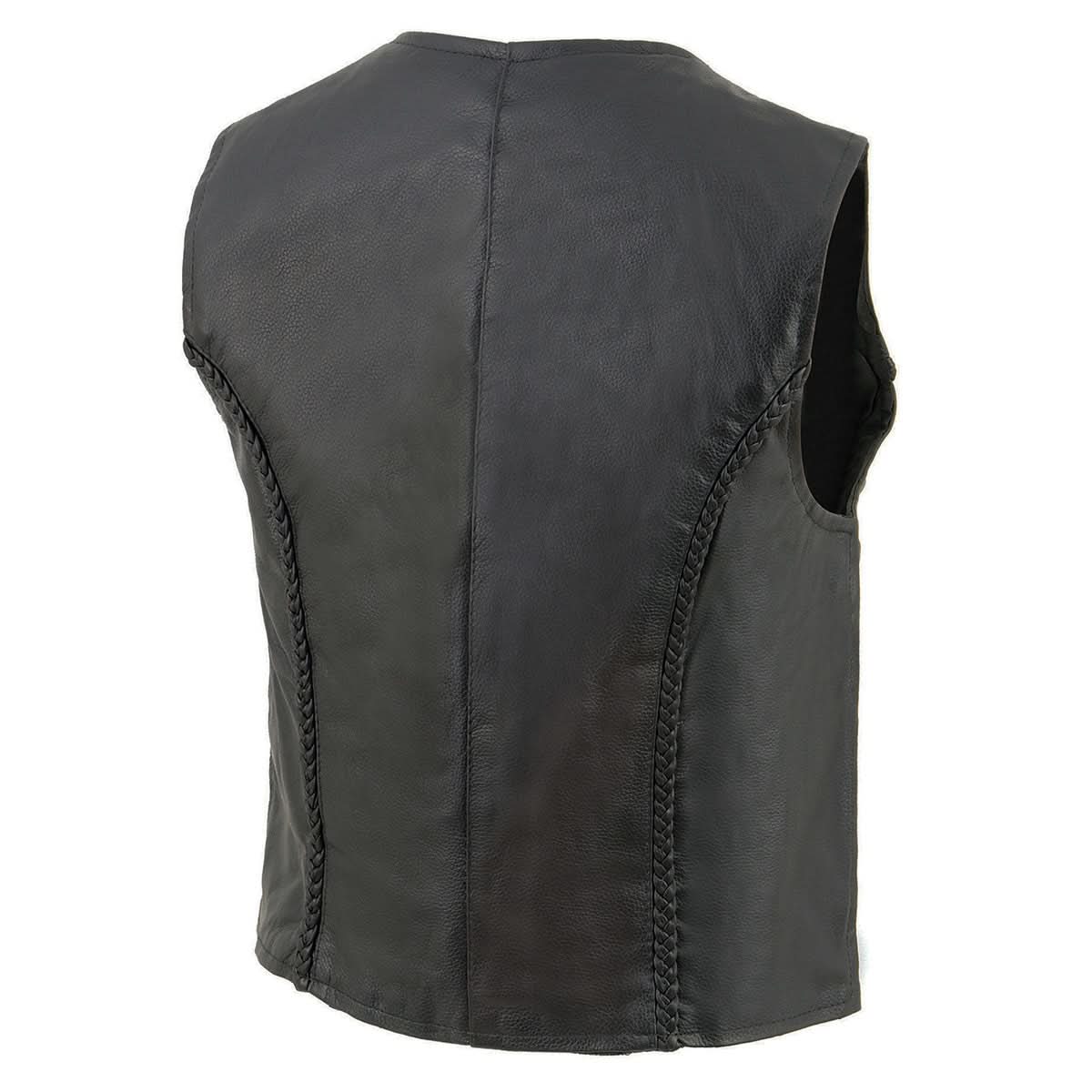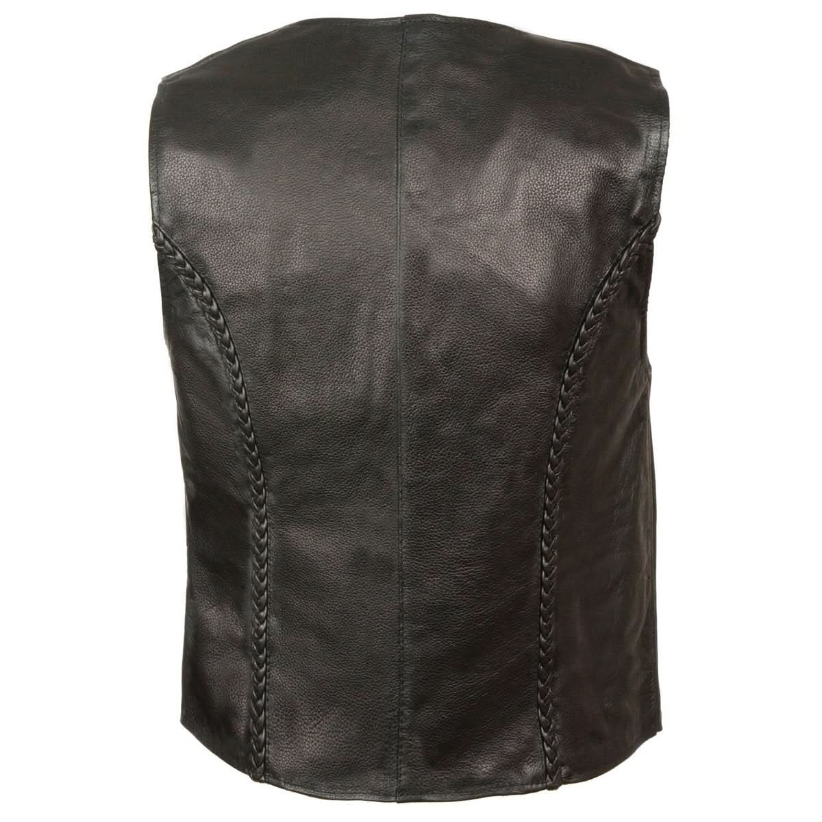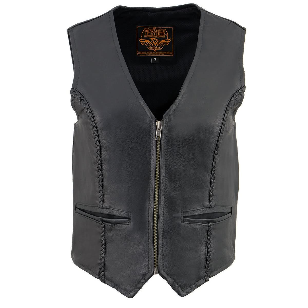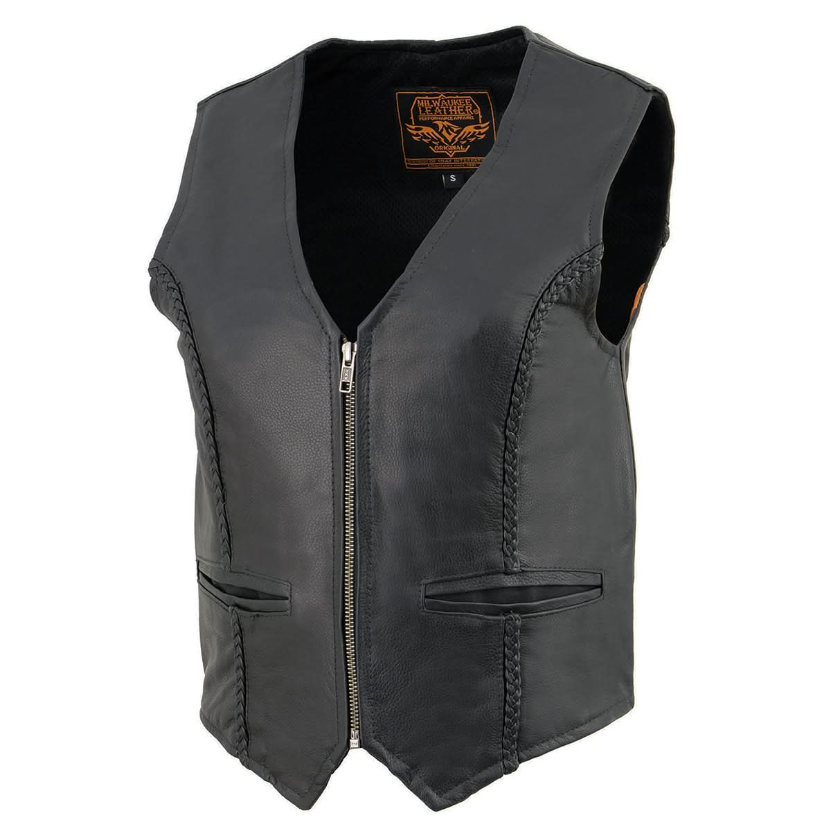 Milwaukee Leather SH1246Z Women's Black Leather Classic Braided Motorcycle Rider Vest with Zipper Closure