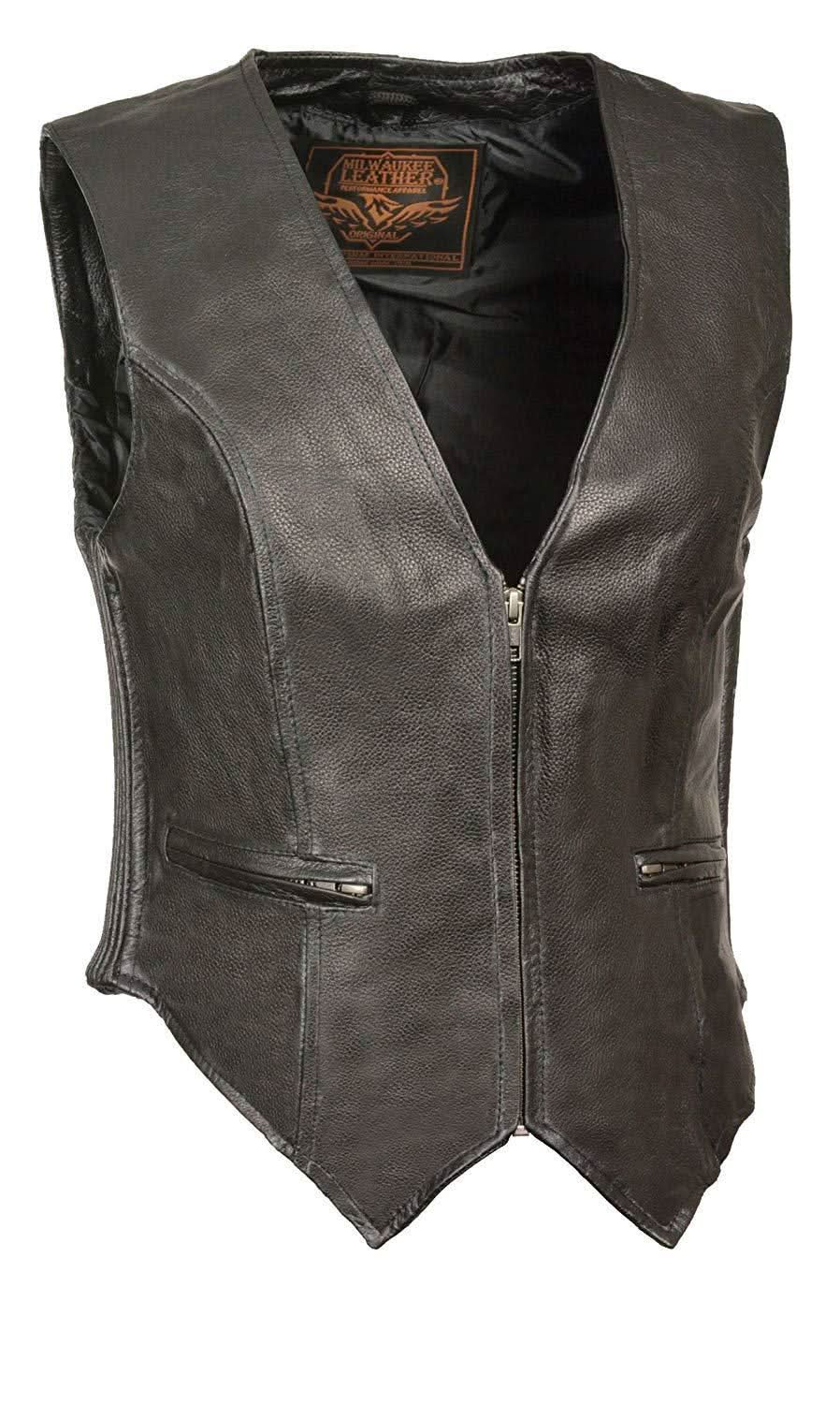 Milwaukee Leather SH1288 Women's Black Leather Deep V-Neck Motorcycle Rider Vest with Side Stretch Panels