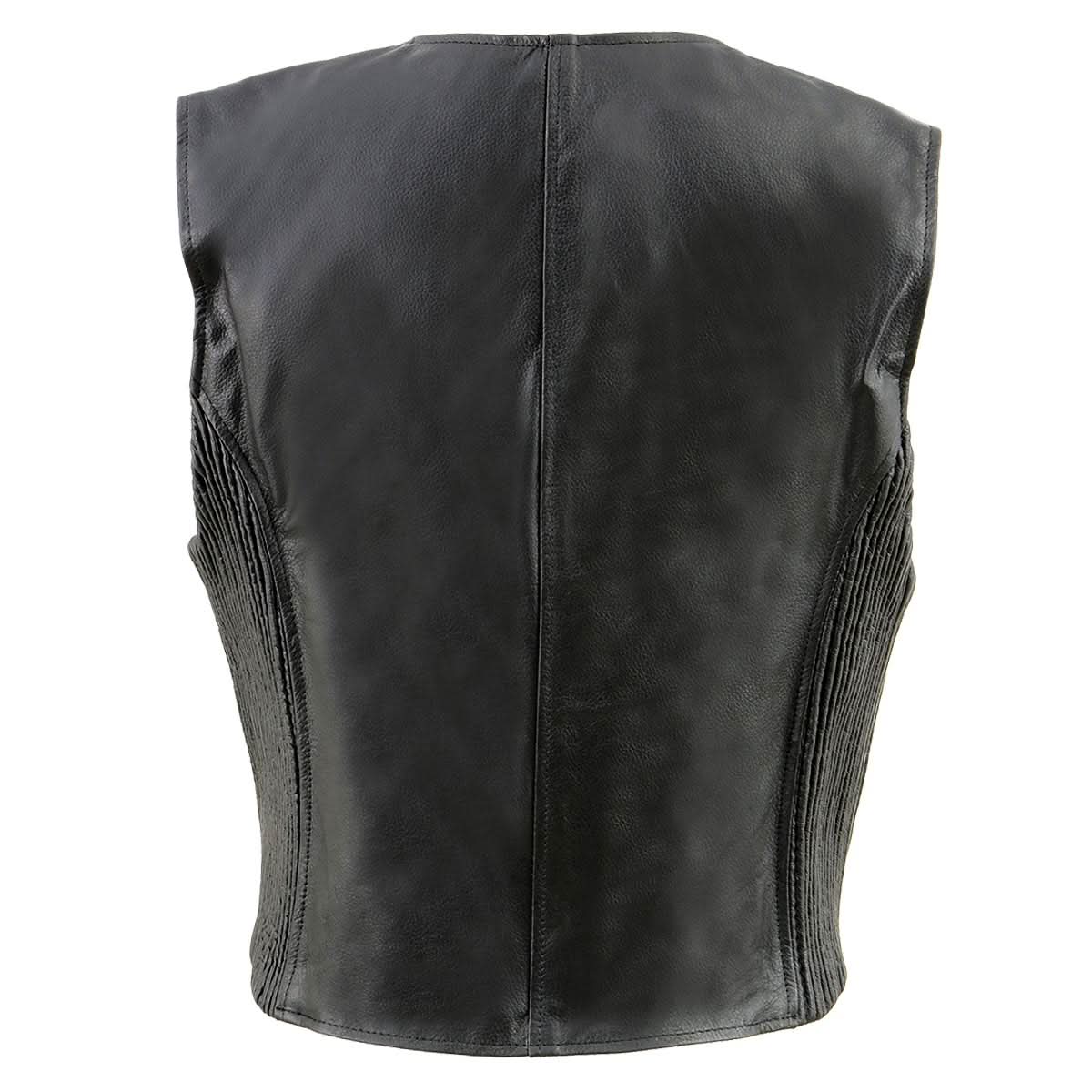 Milwaukee Leather SH1288 Ladies Black Leather Vest with Side Stretch Panels