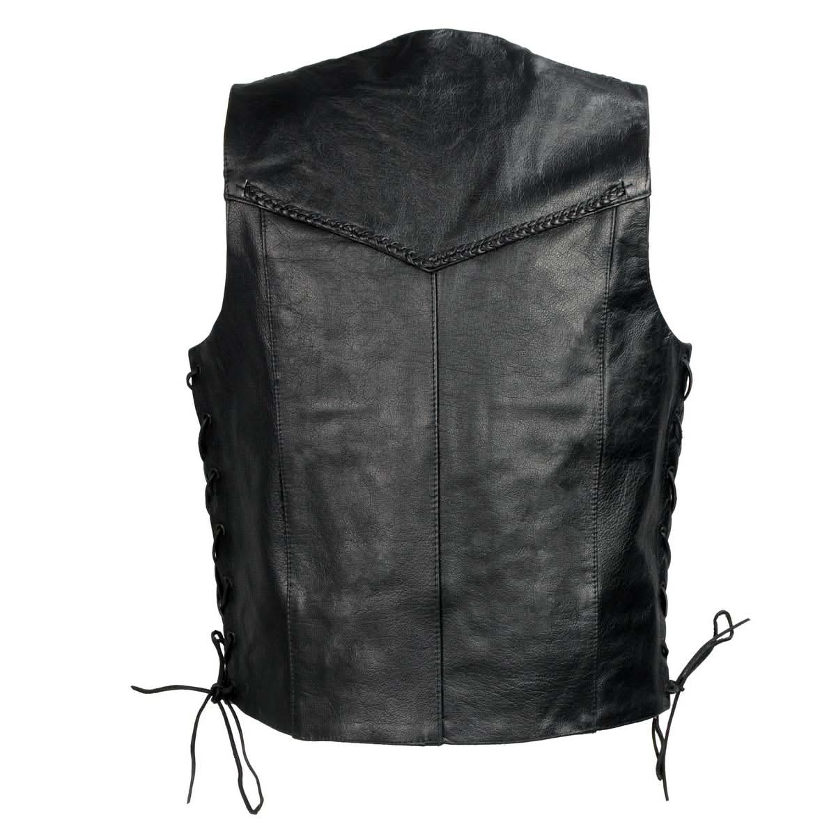 Milwaukee Leather SH1314 Men's Classic Black Braided Leather Vest with Side Laces