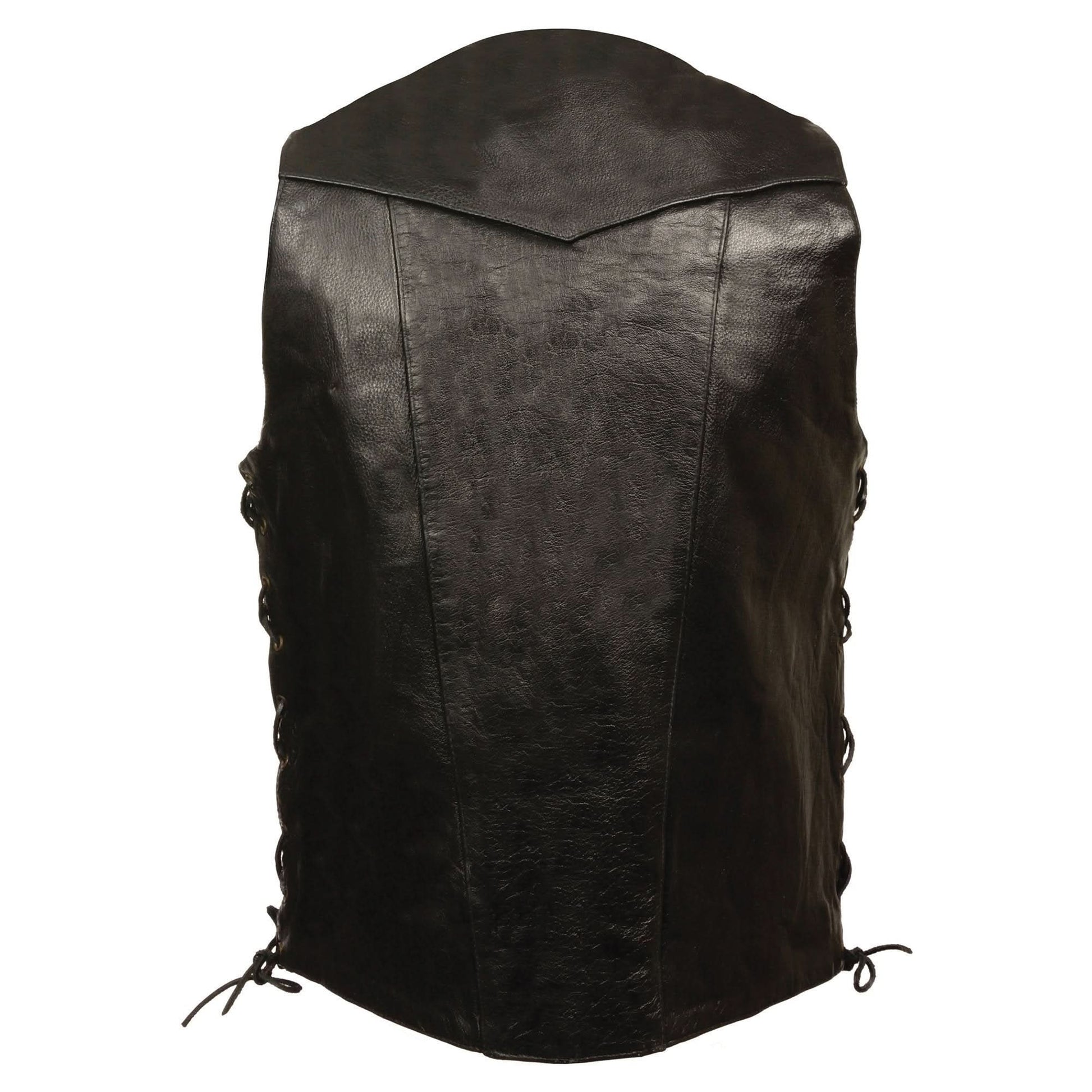 Milwaukee Leather SH1392Tall Men's Black Leather 10 Pocket V-Neck Side Lace Motorcycle Rider Vest w/ Snap Closure