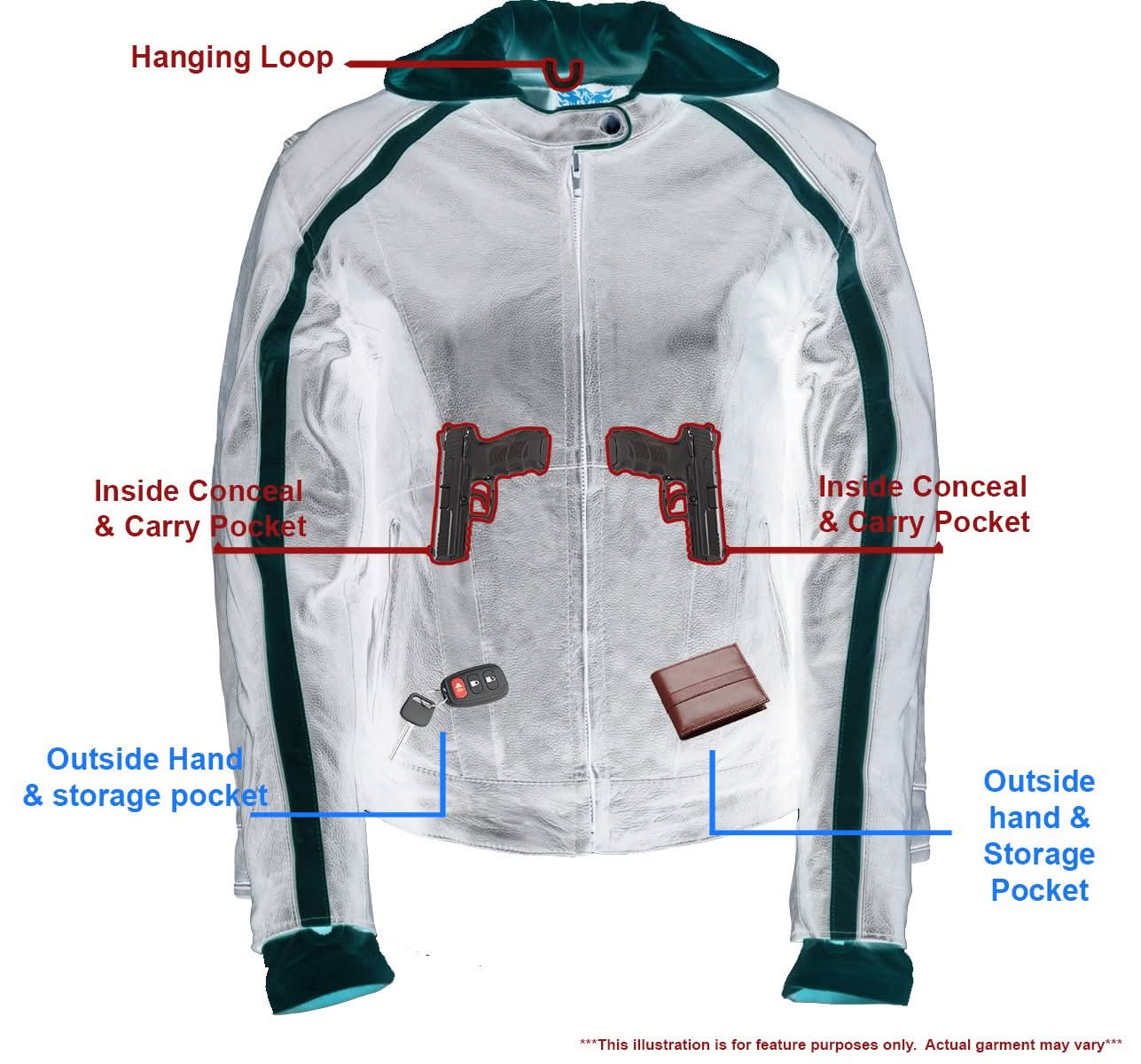 - Built in Dual Side Concealed Weapon and Ammo Pocket