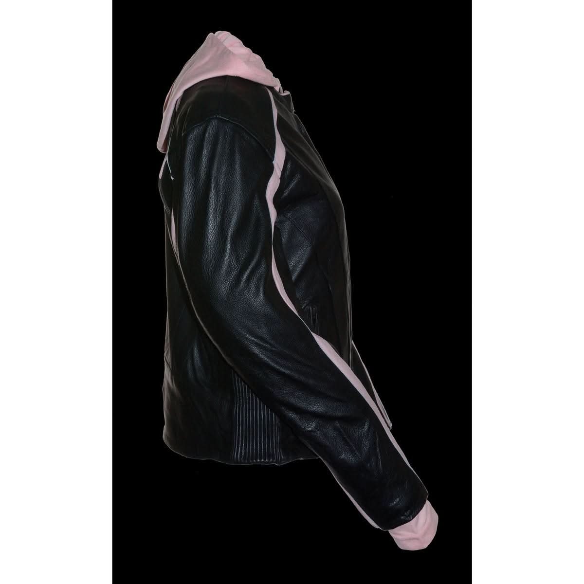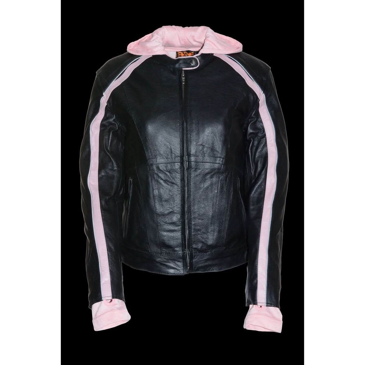 Milwaukee Leather SH1951 Women's Black and Pink Striped Leather Jacket with Zip-Out Hoodie