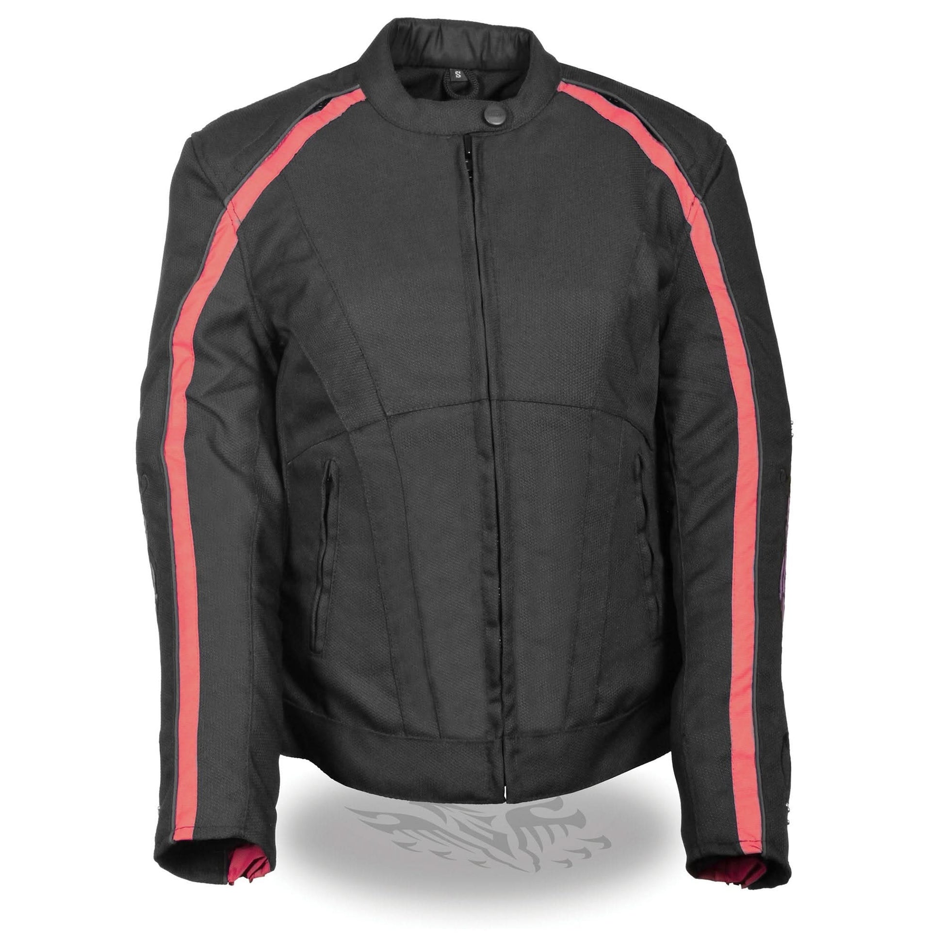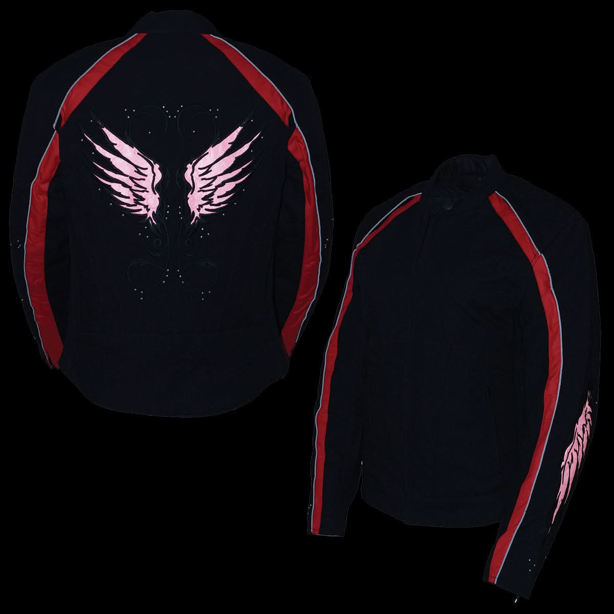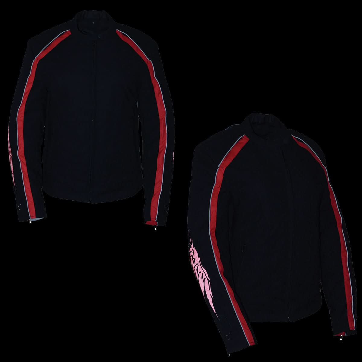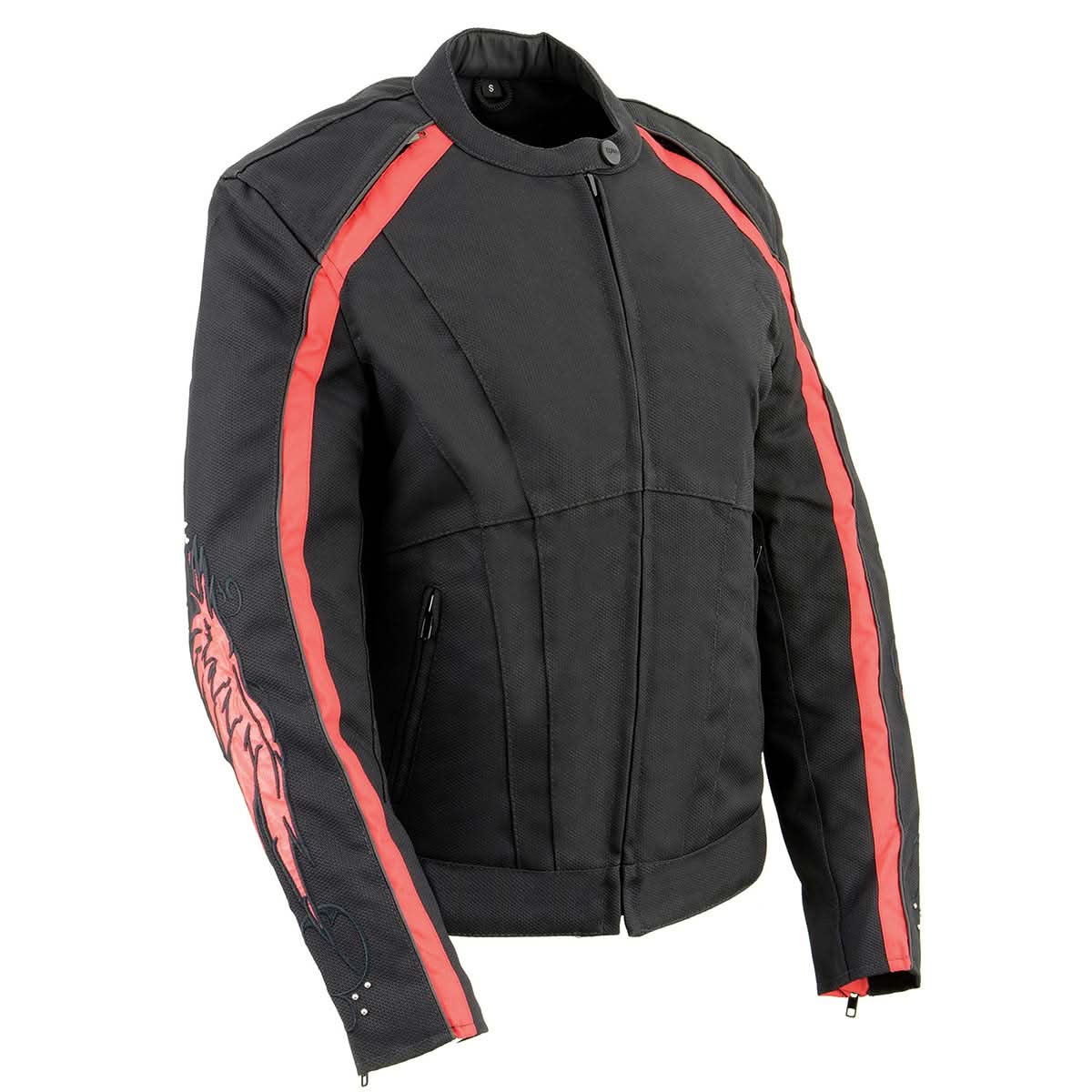 Milwaukee Leather SH1954 Women's Black and Red Textile Jacket with Stud and Wings Detailing