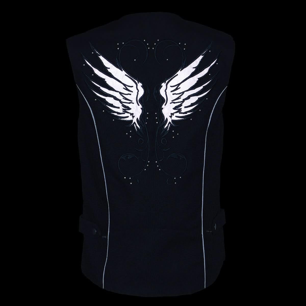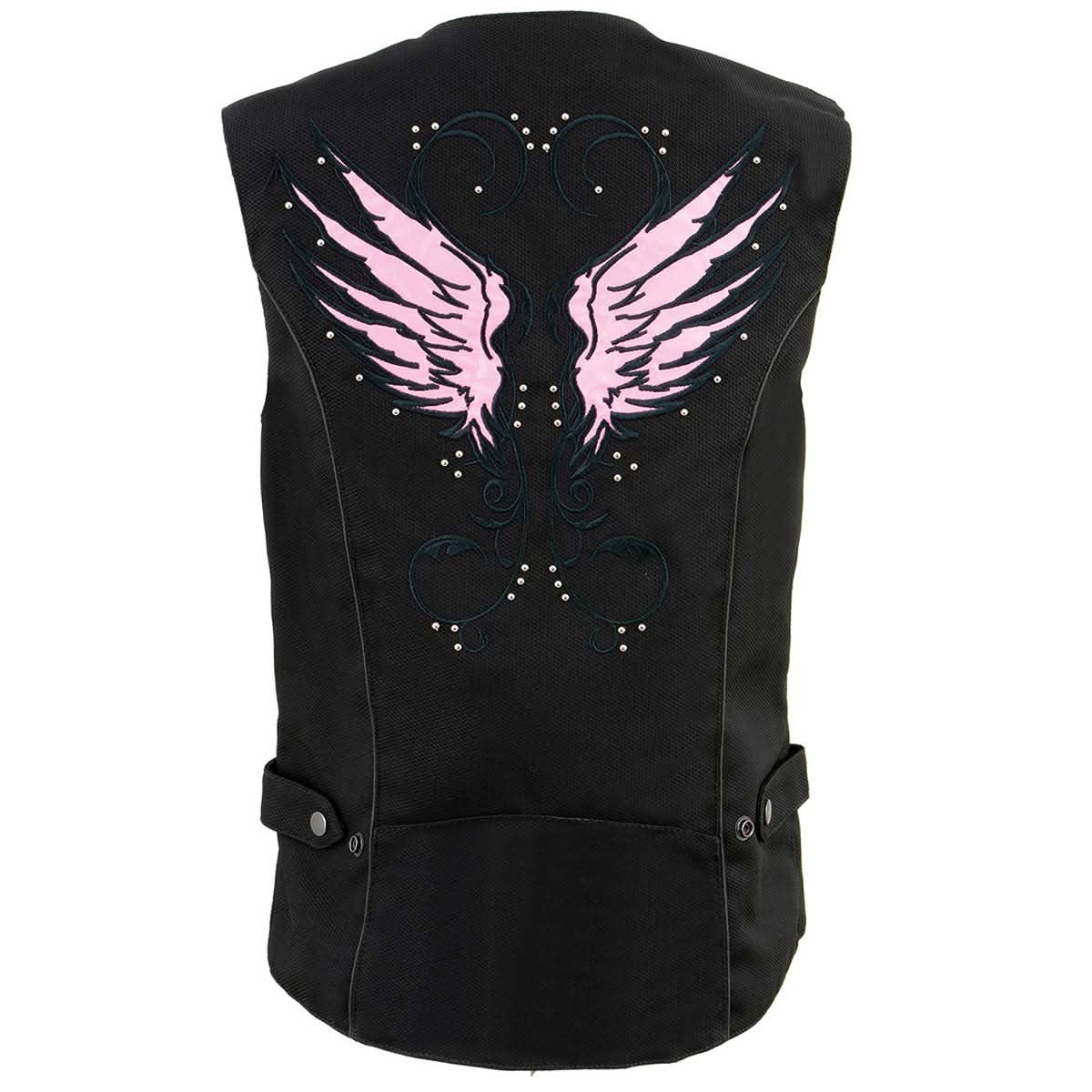 Milwaukee Leather SH1955 Ladies Black and Pink Textile Vest with Wing Embroidery
