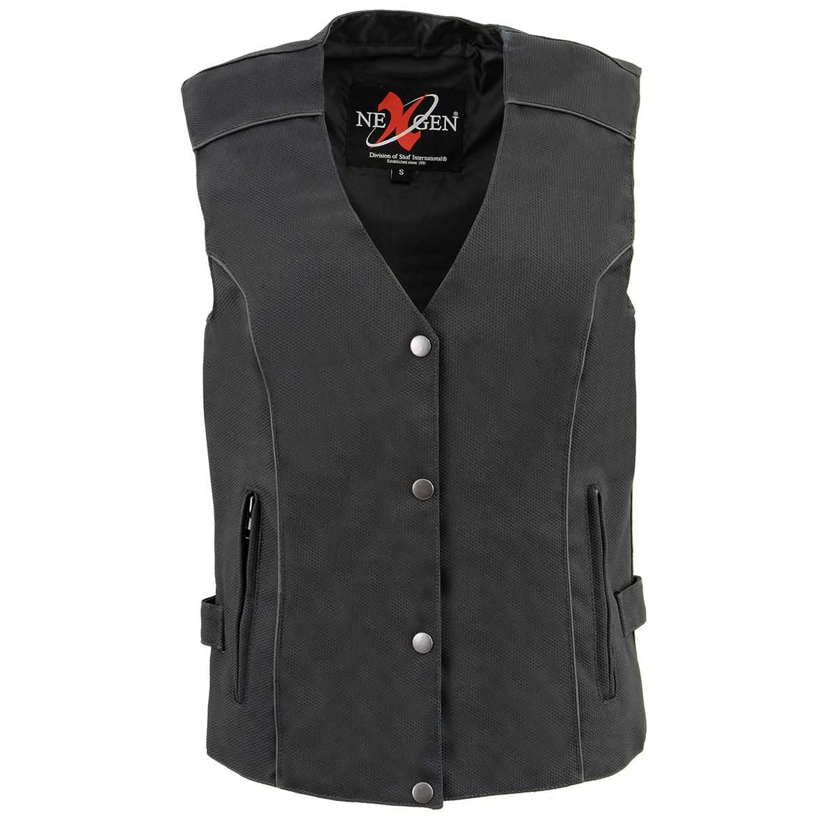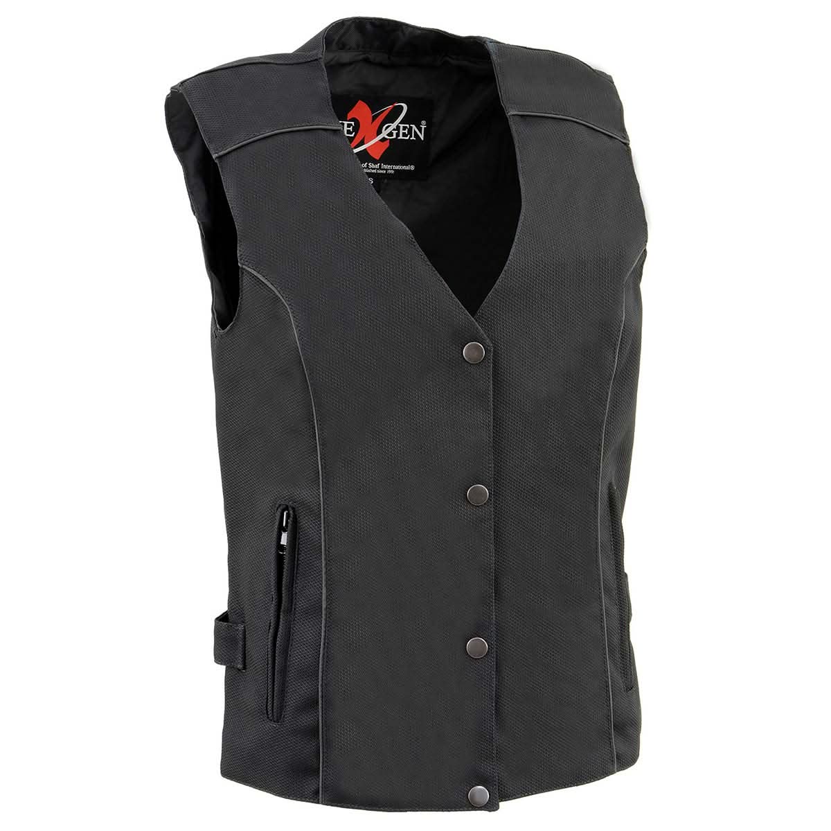 Milwaukee Leather SH1955 Ladies Black and Pink Textile Snap Front Vest with Wing Embroidery