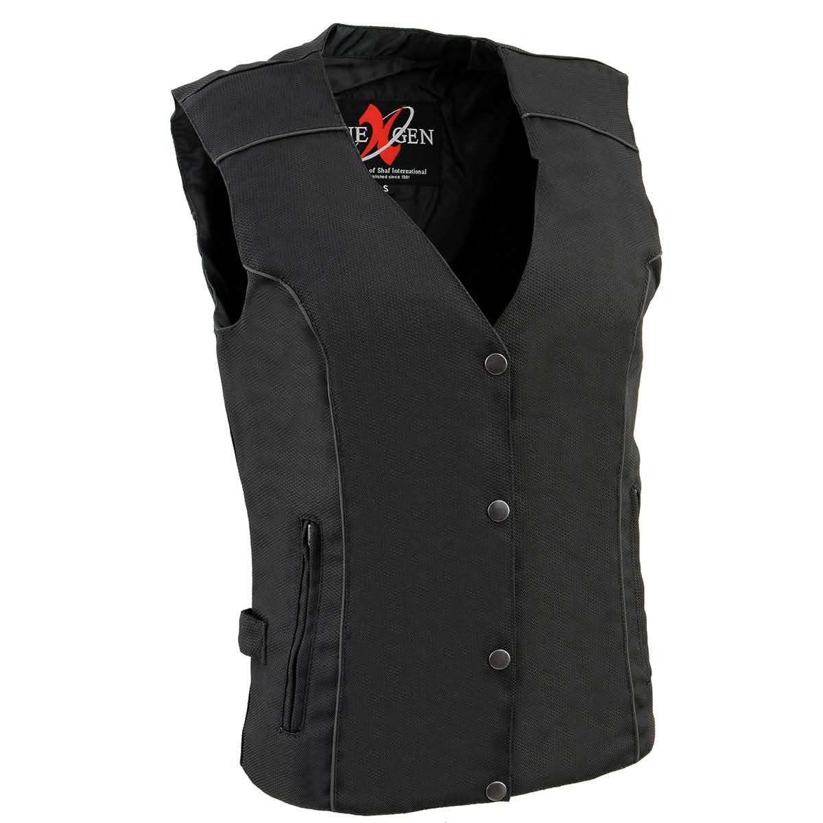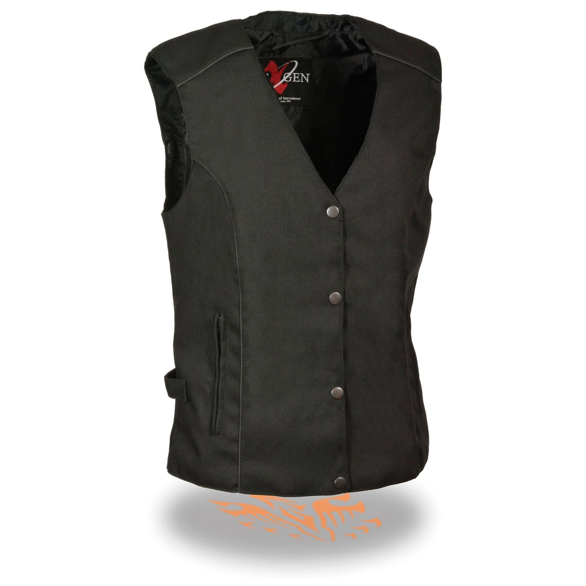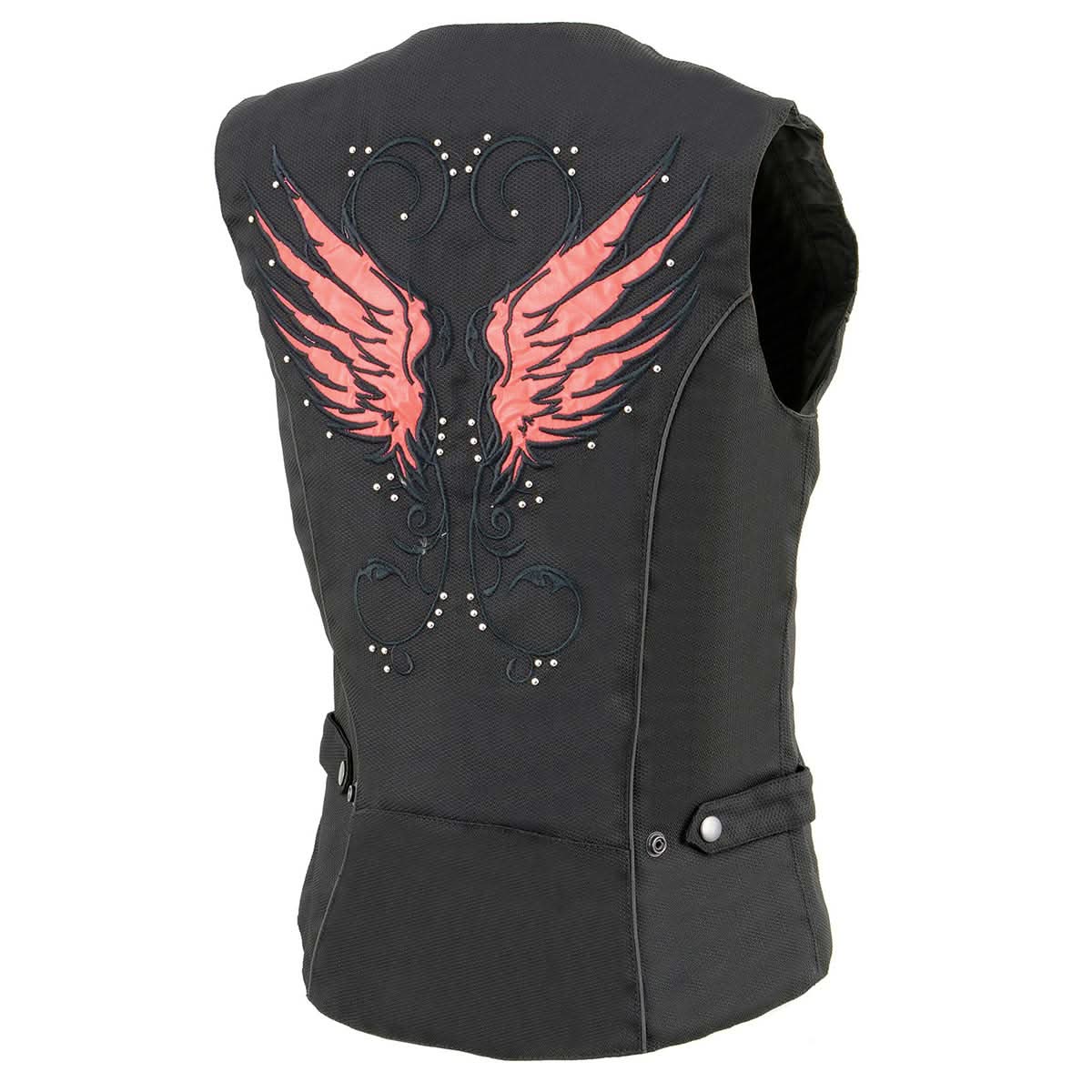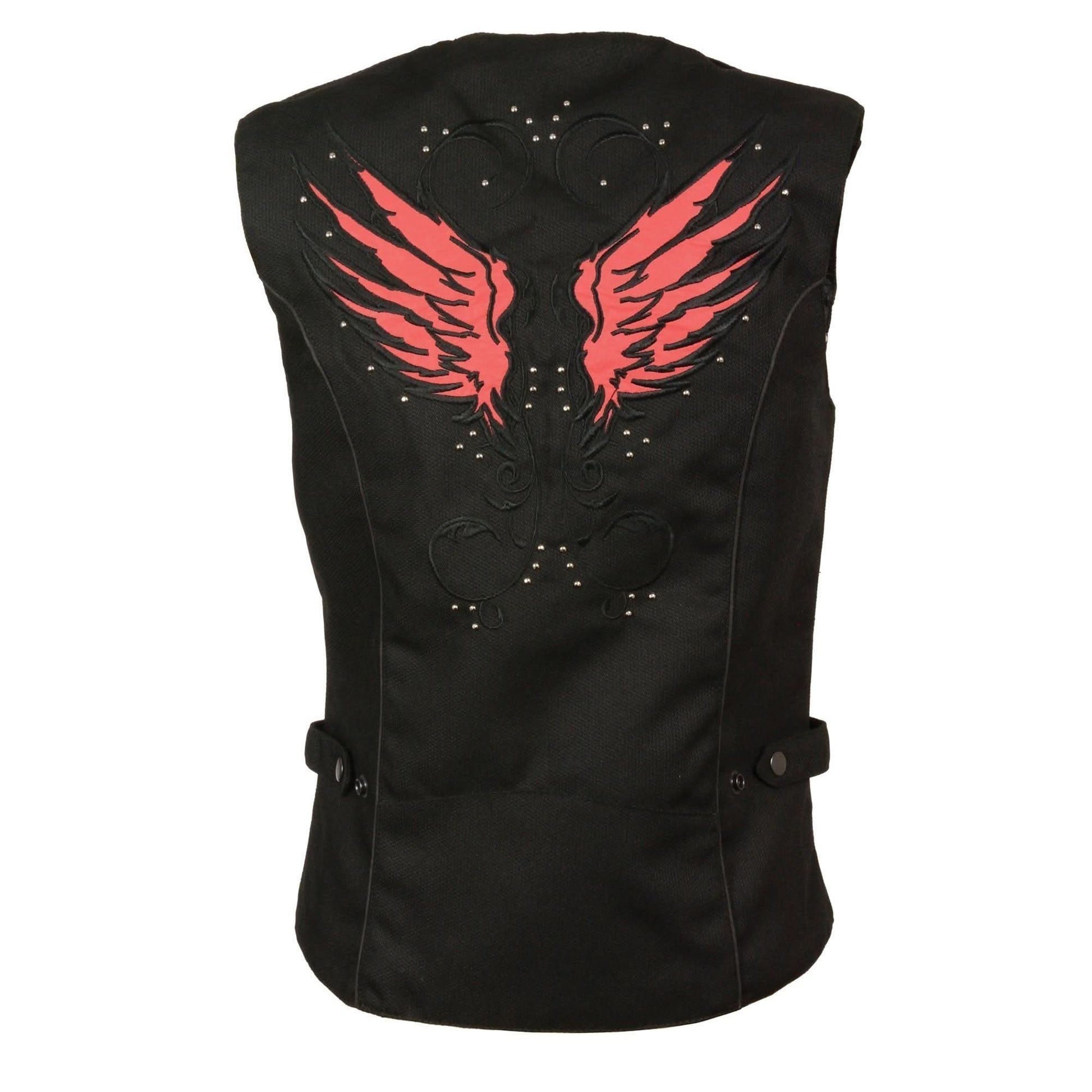 Milwaukee Leather SH1955 Ladies Black and Red Textile Vest with Wing Embroidery