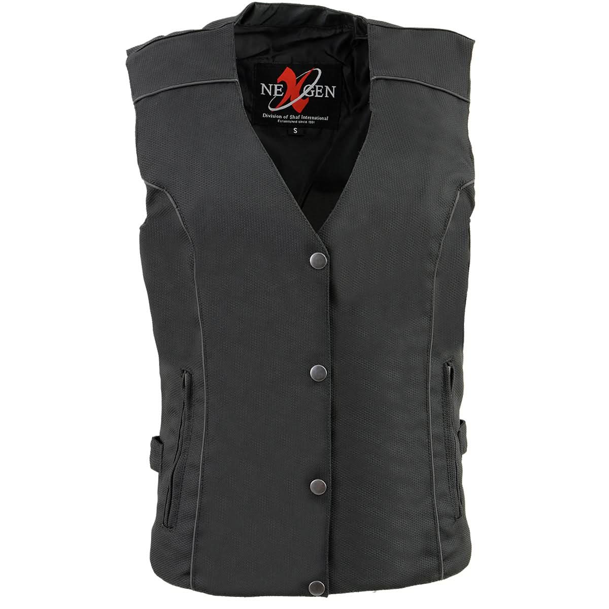 Milwaukee Leather SH1955 Ladies Black and Red Textile Snap Front Vest with Wing Embroidery