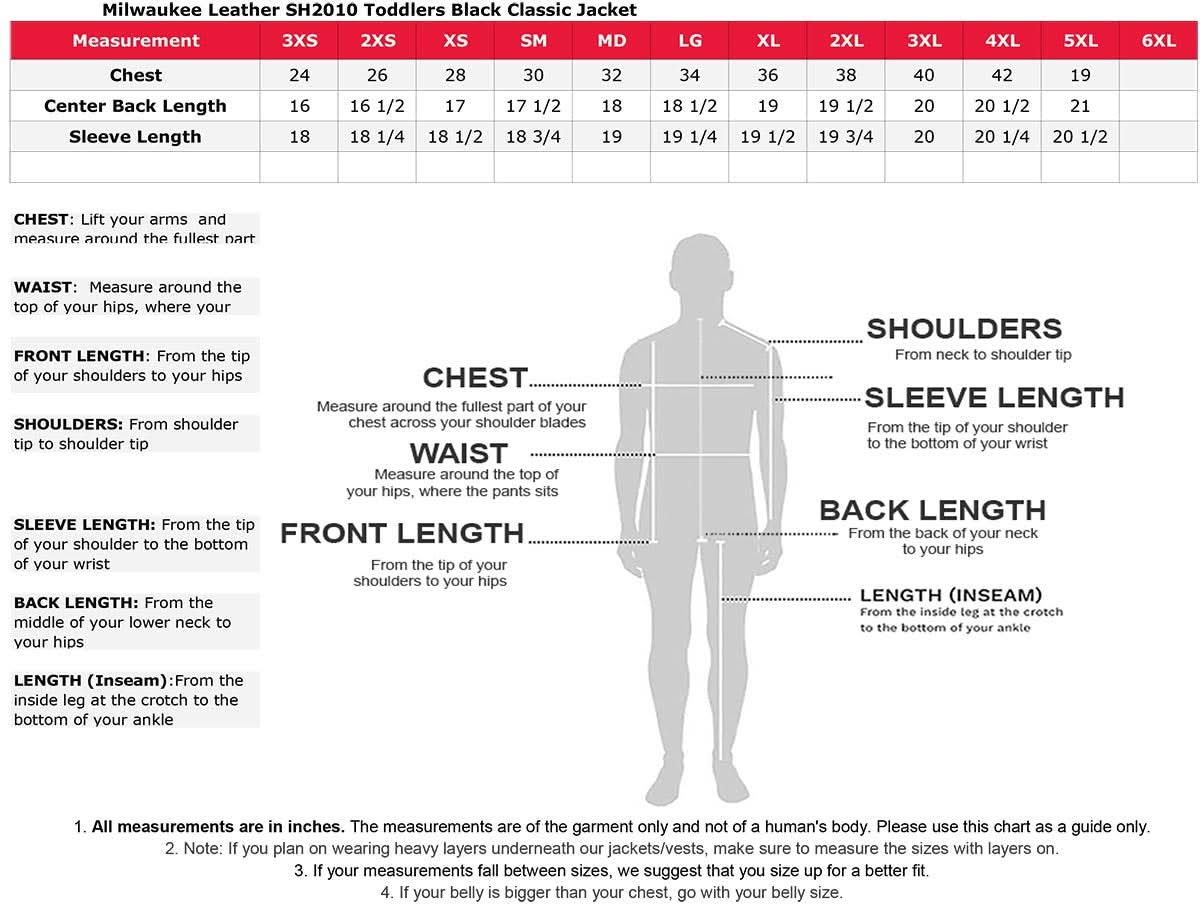 Milwaukee Leather SH2010 Toddlers Black Classic Motorcycle Leather Jacket