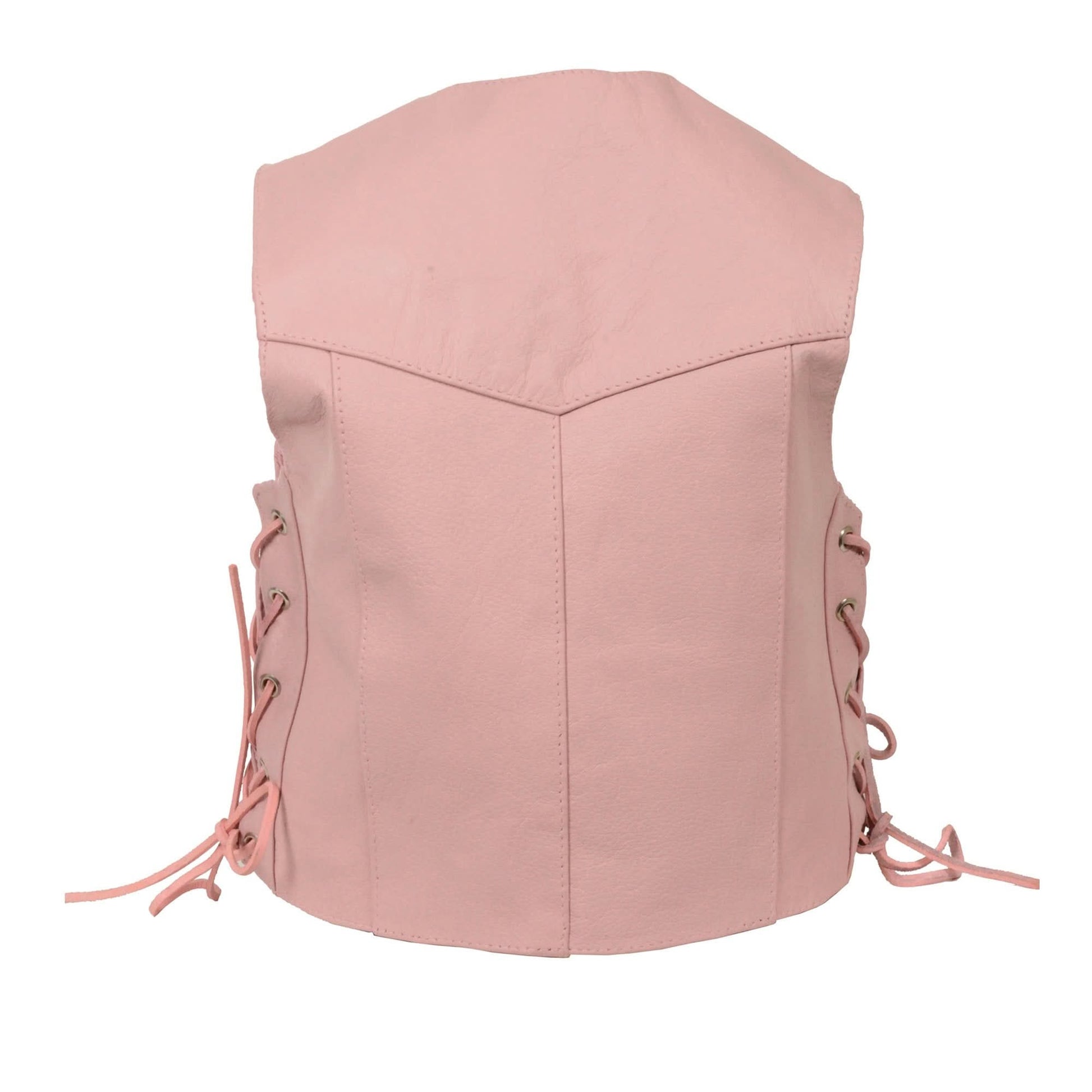 Milwaukee Leather SH2011LPNK Girls Pink Classic Three Snap Leather Vest