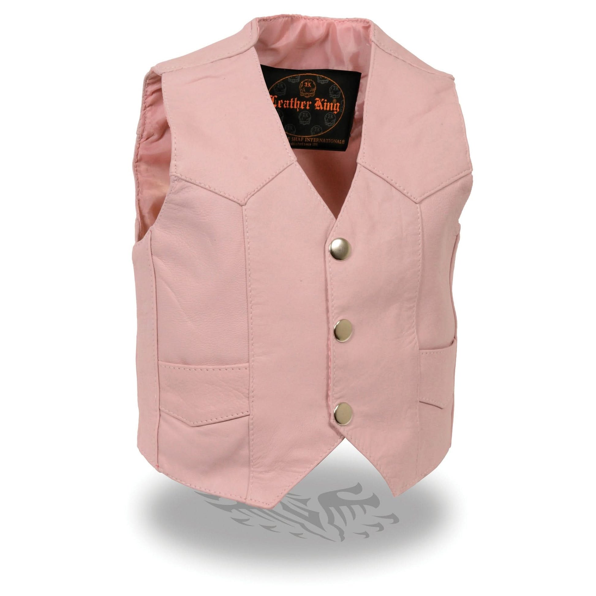 Milwaukee Leather SH2011PINK Girls Pink Three Snap Leather Vest