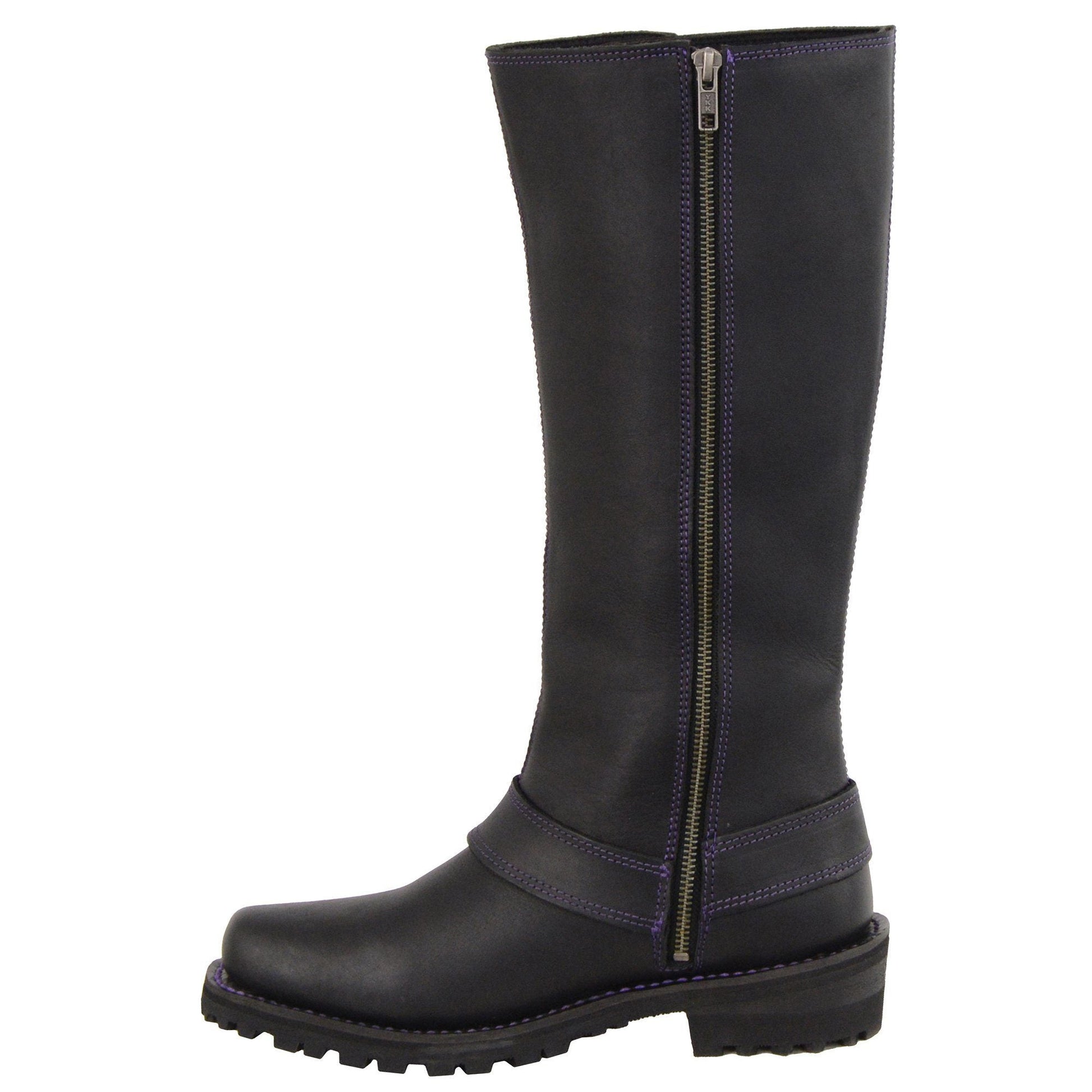 Milwaukee Leather MBL9366 Women's Black 14-inch Leather Harness Boots with Purple Accent Lacing