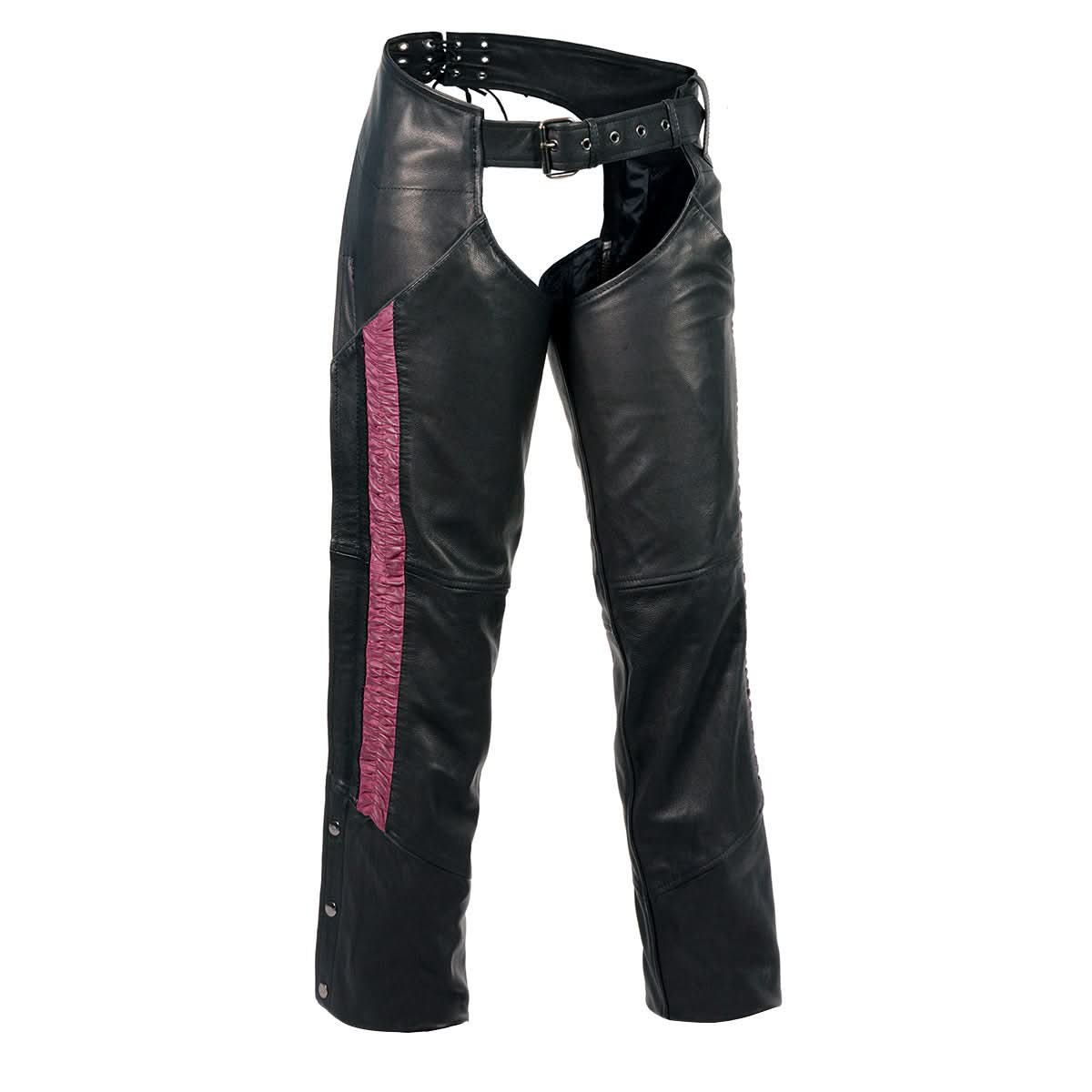 Milwaukee Leather MLL6500 Women's Black and Fuchsia Leather Hip Set Chaps with Crinkled Leg Striping