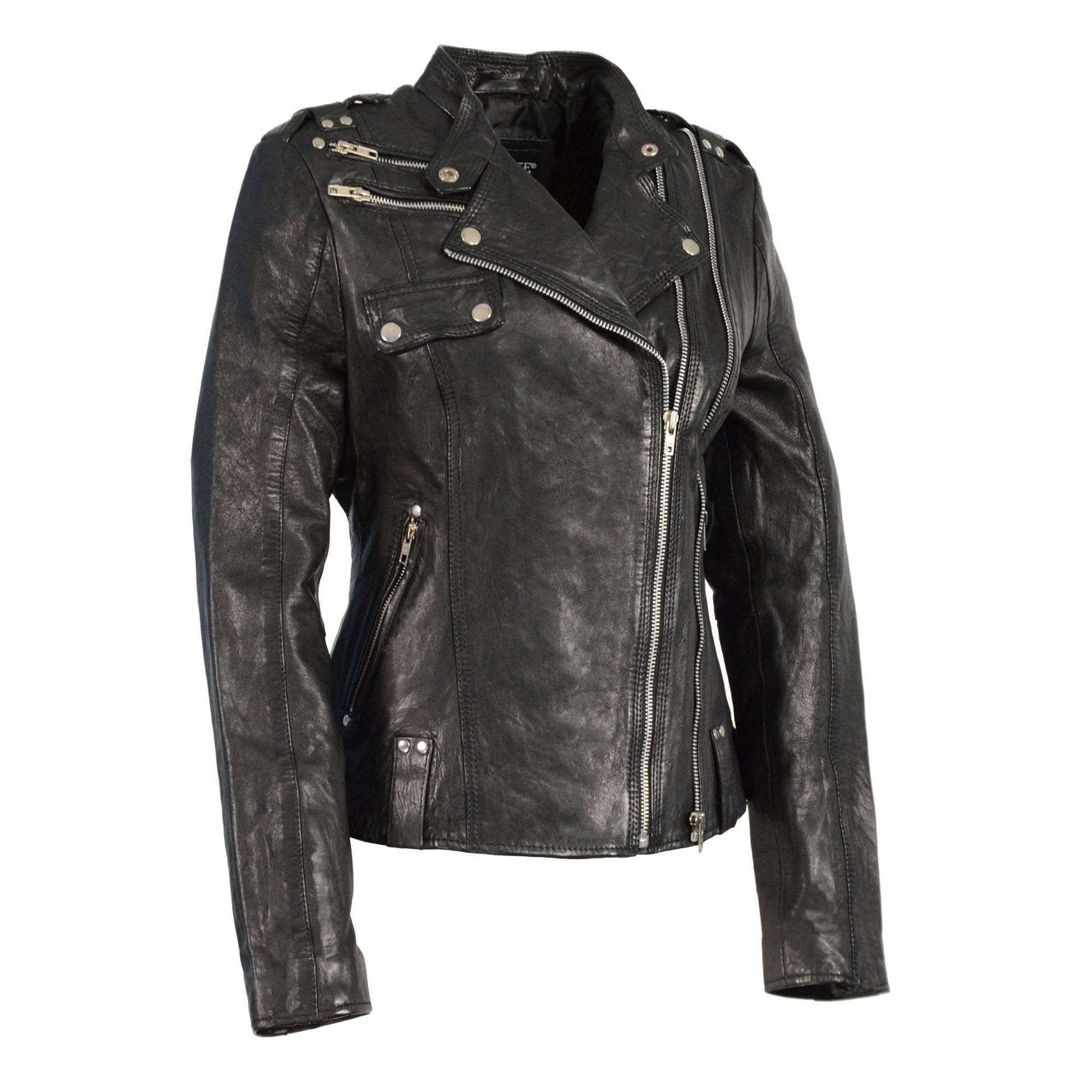 Milwaukee Leather SFL2845 Ladies Black Leather Moto Jacket with Asymmetrical Zipper