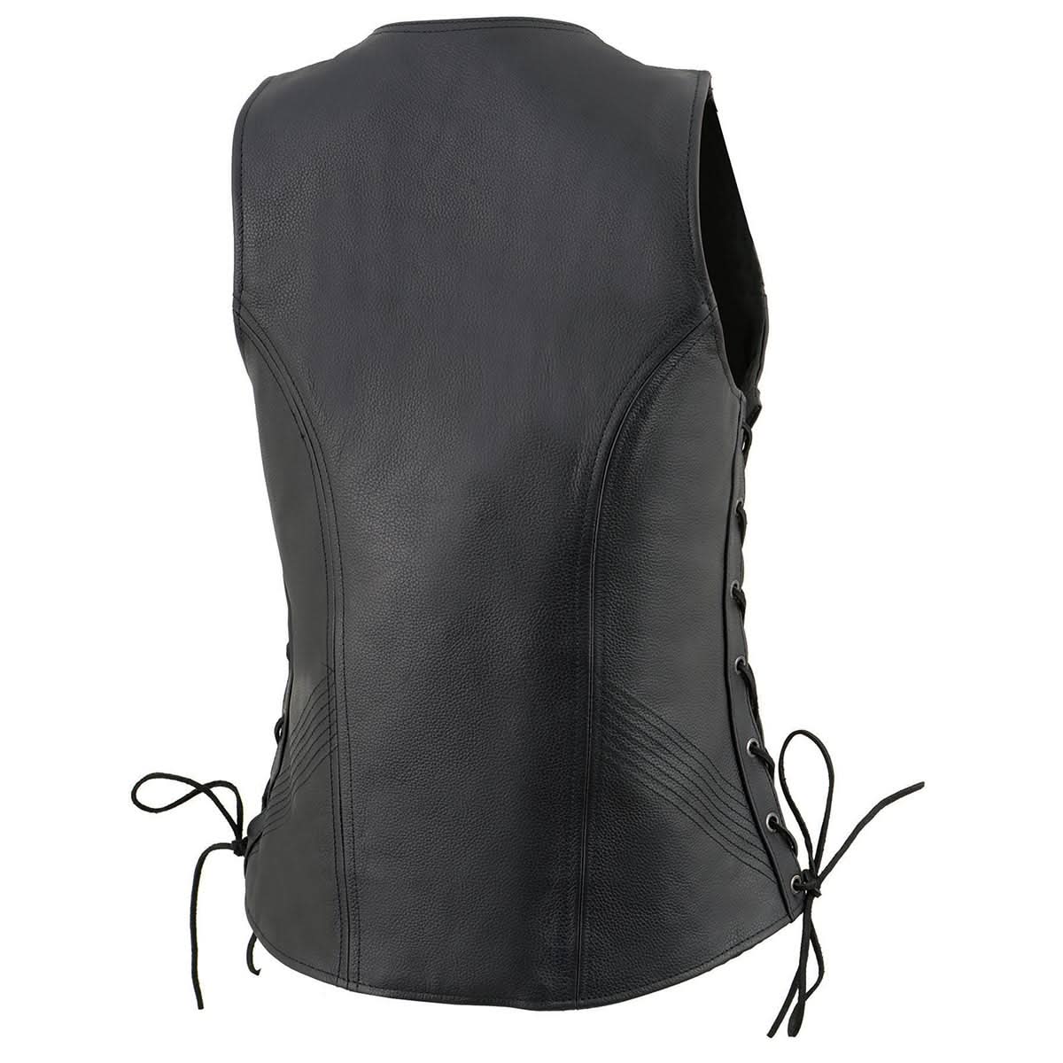 Milwaukee Leather Women's Black Leather V-Neck Motorcycle Rider Vest with Side Lace MLL4531