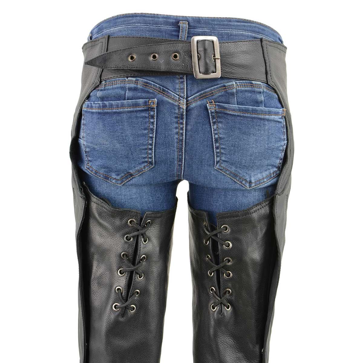 Milwaukee Leather Women's Black Premium Leather Motorcycle Rider Protective Chaps MLL6520