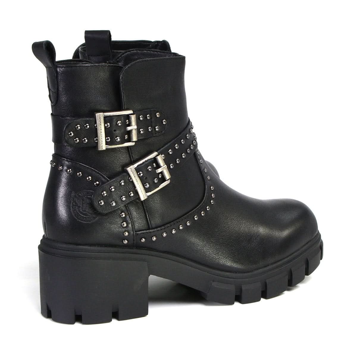 Milwaukee Leather MBL9446 Women's ‘Siren’ Premium Black Studded Fashion Boots w/ Side Zippers