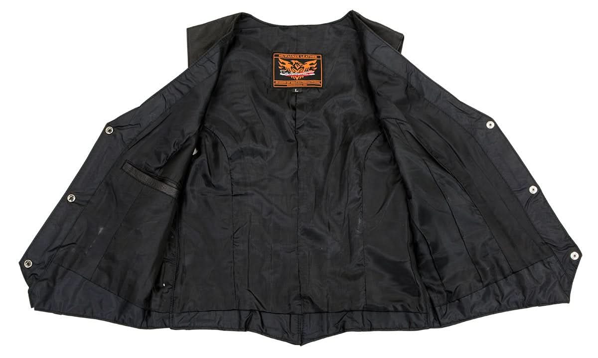 Milwaukee Leather XS1253 Women's Classic Black Leather Vest with Buffalo Nickel Snap Buttons