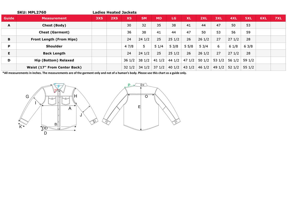 - Power-On Button on Chest (Led Lights Indicate Power is On or Off – Warming jacket Settings Red = High, White = Medium, Blue = Low)