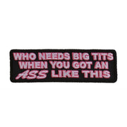 This is a funny patch for all ladies who are lacking a rack of tits but got ""The Ass"" to cover for them. The patch is embroidered in white and pink measures 4x1.25 inches and is rectangular shaped. So who needs big tits when you got an Ass like this!