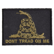 The subdued Don't Tread on me Gadsden flag patch measures 3x2 inches. Embroidered in military green over black, the iron on patch measures 3x2 inches.