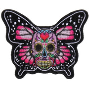 Sugar Skull Butterfly Patch measures 4x3.2 inches and is Embroidered in Black / Pink / White. The Small Patch can be sewn on or ironed on to clothing such as Denim or Leather Jackets, Vests, Hats, Back Packs, Shirts. Features plastic backing and embroidered die cut borders.