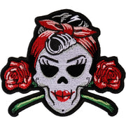 Rockabilly Lady Skull Patch measures 4.3x3.7 inches and is Embroidered in Black / Red / White / Green. The Small can be sewn on or ironed on to clothing. The Rockabilly Lady Skull Patch features plastic iron on backing and clean laser cut embroidered borders.