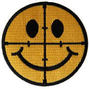 Sniper Scope Smiley Face Patch measures 3x3 inches and is Embroidered in Black / Yellow. The Small can be sewn on or ironed on to clothing. The Sniper Scope Smiley Face Patch features plastic iron on backing and clean laser cut embroidered borders.