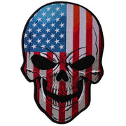 American Flag Skull Large Back Patch measures 7.6x11 inches and is Embroidered in Red / White / Blue / Black. The Large Patch can be sewn on or ironed on to clothing such as Denim or Leather Jackets, Vests, Hats, Back Packs, Shirts. Features plastic backing and embroidered die cut borders. Copyright number VA0002104777