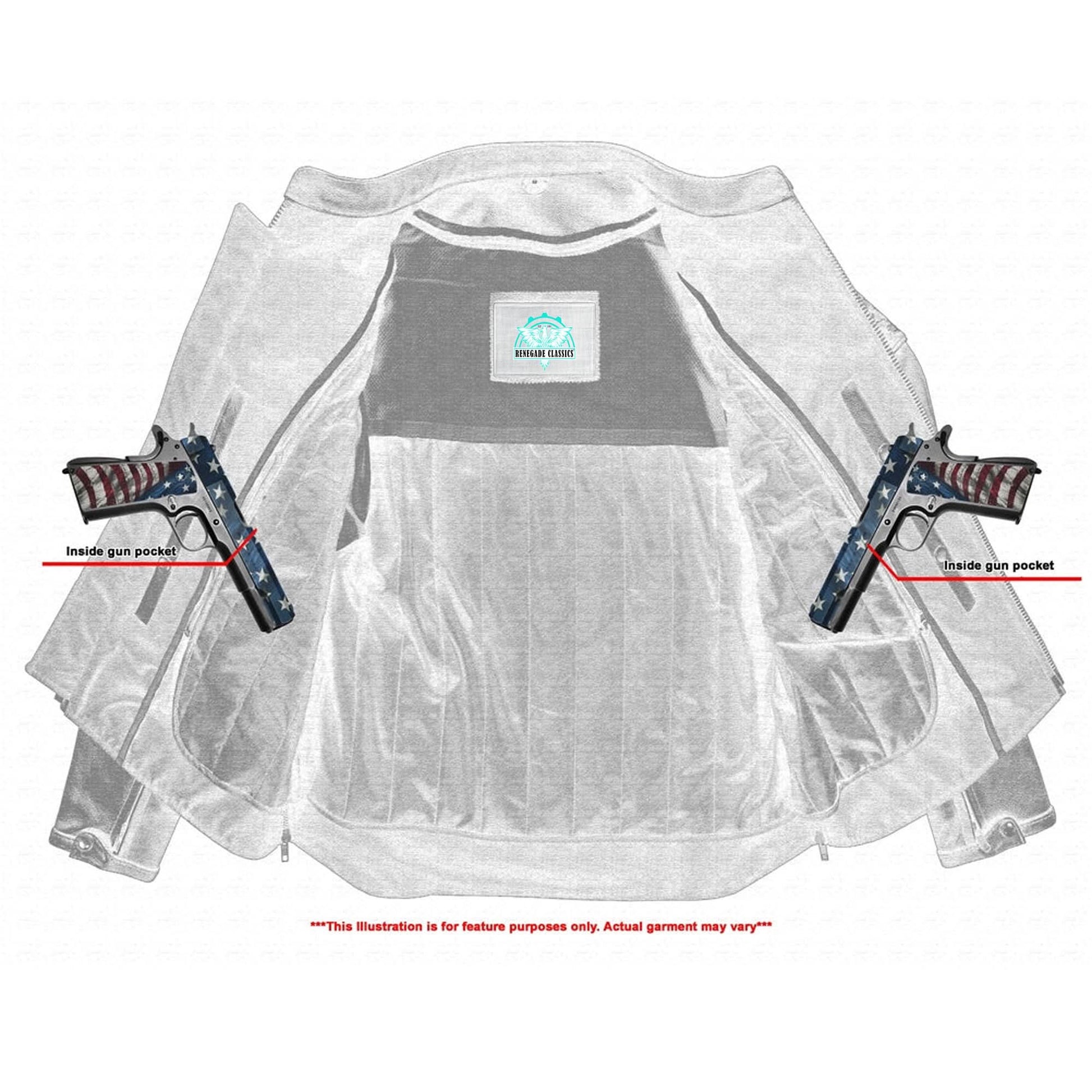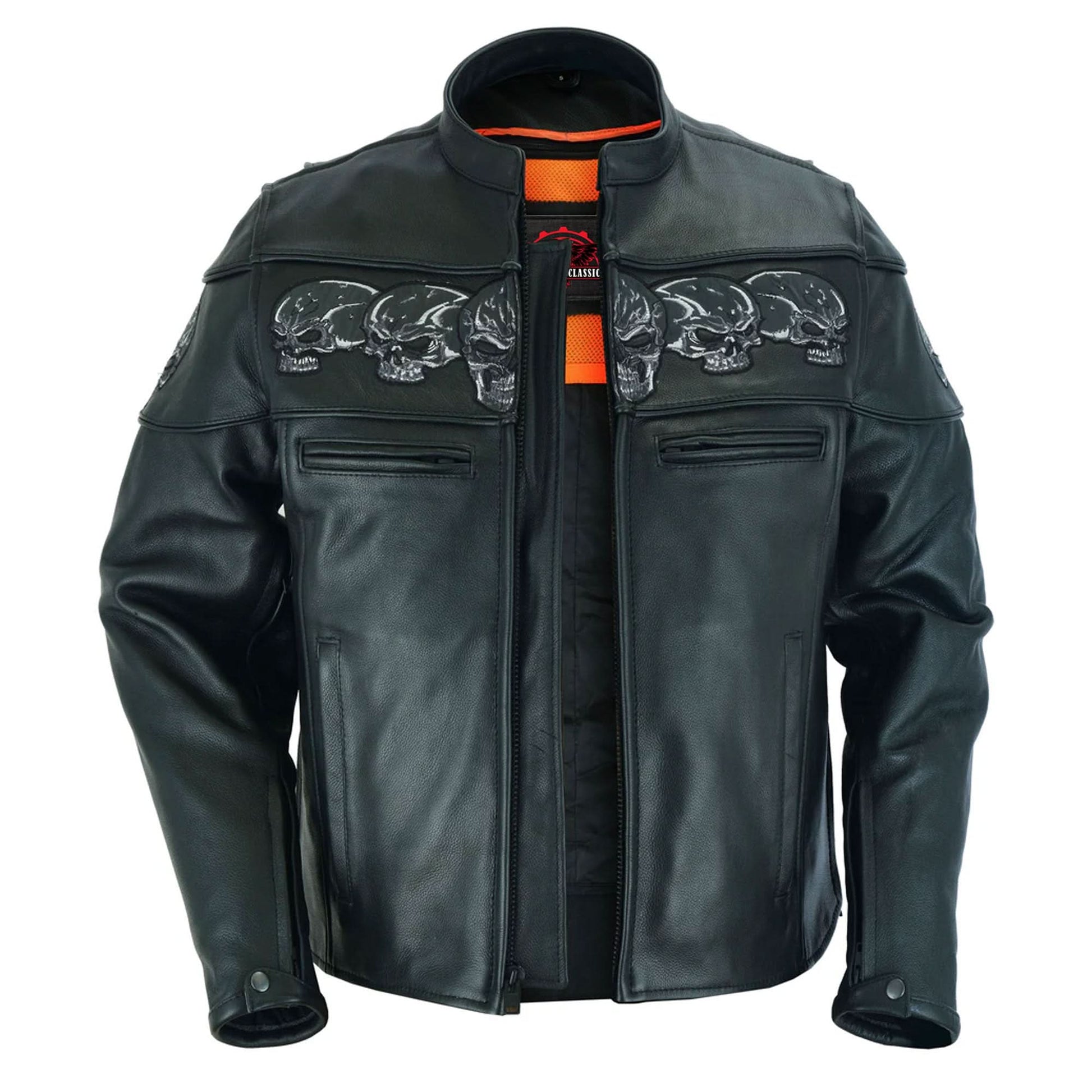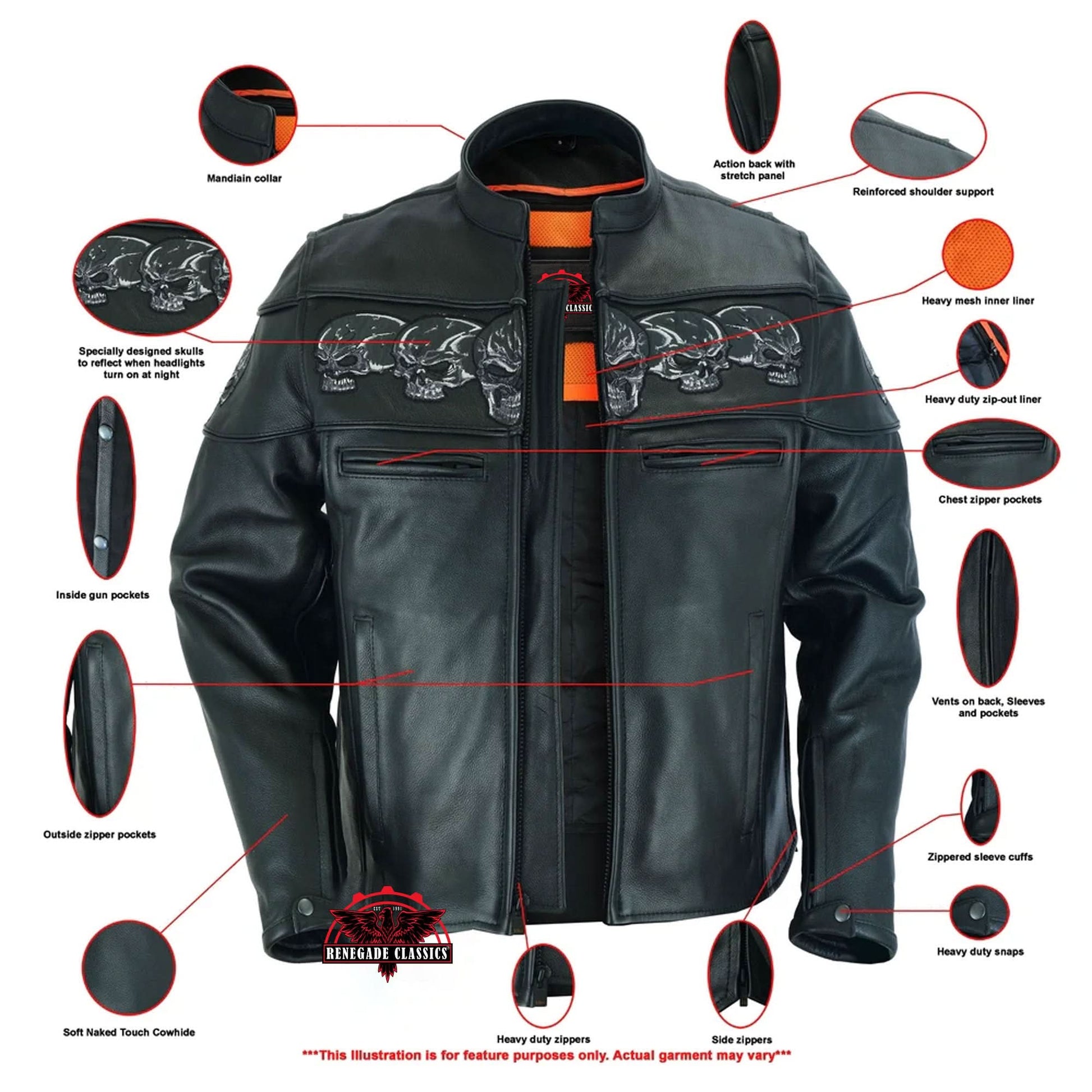 Slim look with nice cuts at the bottom and sleeves, and good shoulder reach when I sit on the bike. It was designed to move with the rider & still look good. Great quality soft leather and heavy for wind but not too heavy. I was cautious to buy without a try before you buy but this one turned out perfect. Pick the size shirt you wear & it'll fit. The double reflective pinstripes around the jacket are a nice touch for those of us who own all black clothes & ride at night.