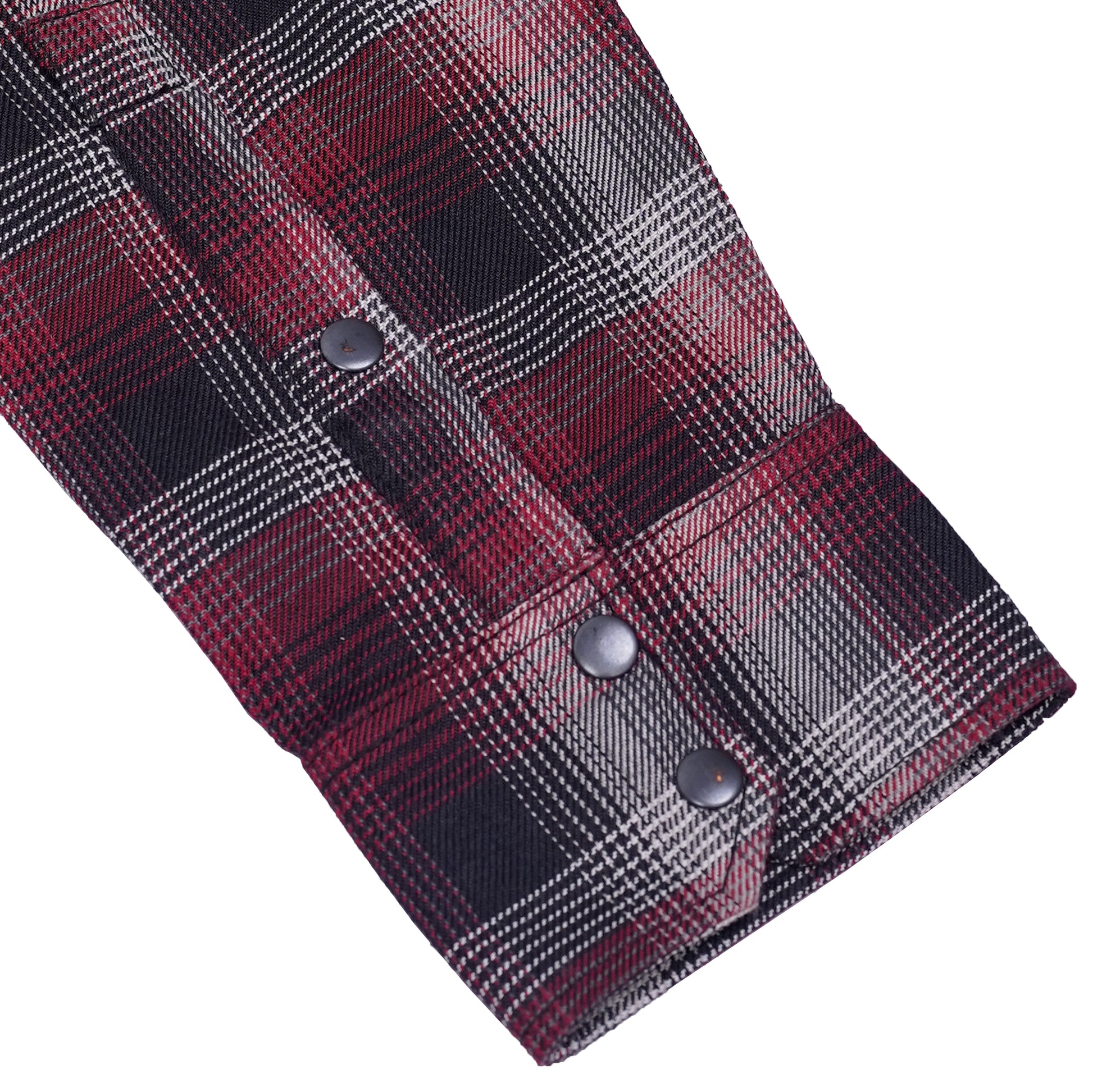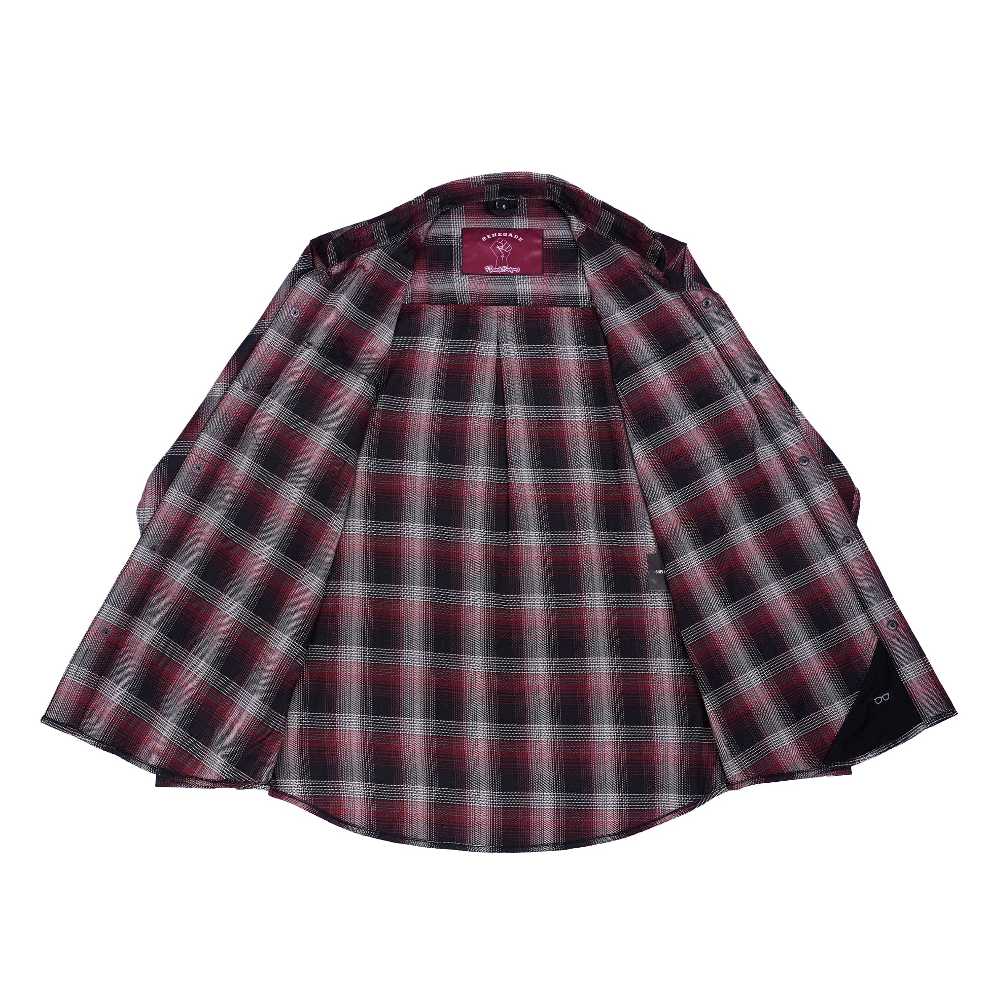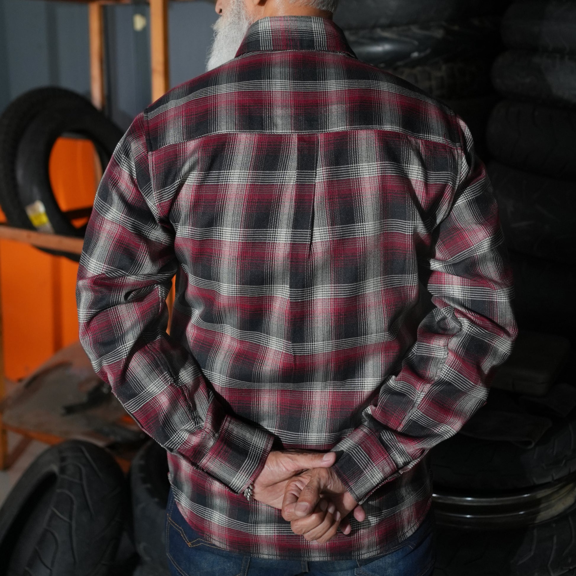 The Riveter Men’s Flannel delivers rugged comfort with a bold edge. Featuring a classic maroon, black, and white plaid pattern, this heavyweight shirt is perfect for cool weather, long rides, or hard days on the job. Made for durability and style, it’s cut to move with you and built to keep up. Double chest pockets, snap buttons, and reinforced seams complete the look. Whether layered or worn solo, the Riveter flannel is a must-have for men who live life full throttle. Ride-ready. Work-tested. Style-approved.