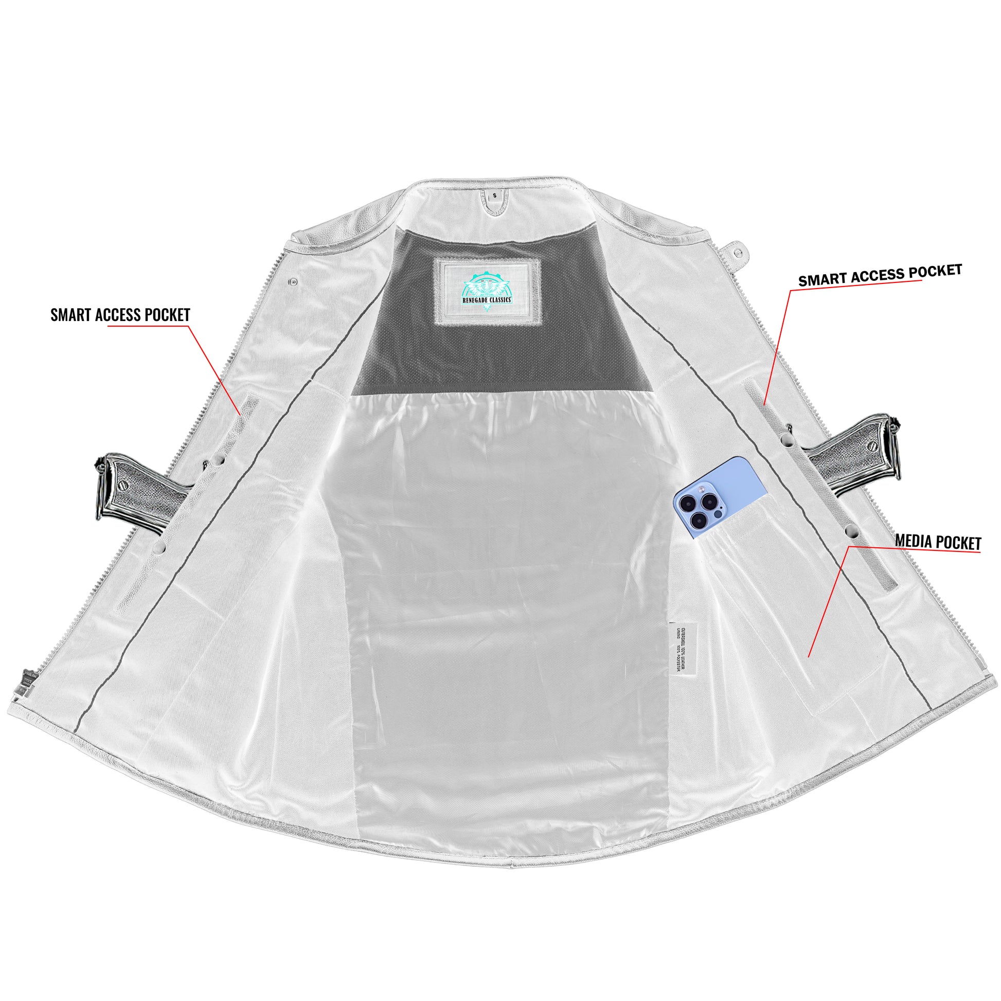 Our men's SWAT team style motorcycle vest is a great addition to every biker's wardrobe. Layer this concealed-carry vest over your leather jacket for extra storage and cold protection, or wear it over a T-shirt in warm weather. The soft cowhide and adjustable Velcro straps create a comfortable, adjustable vest.