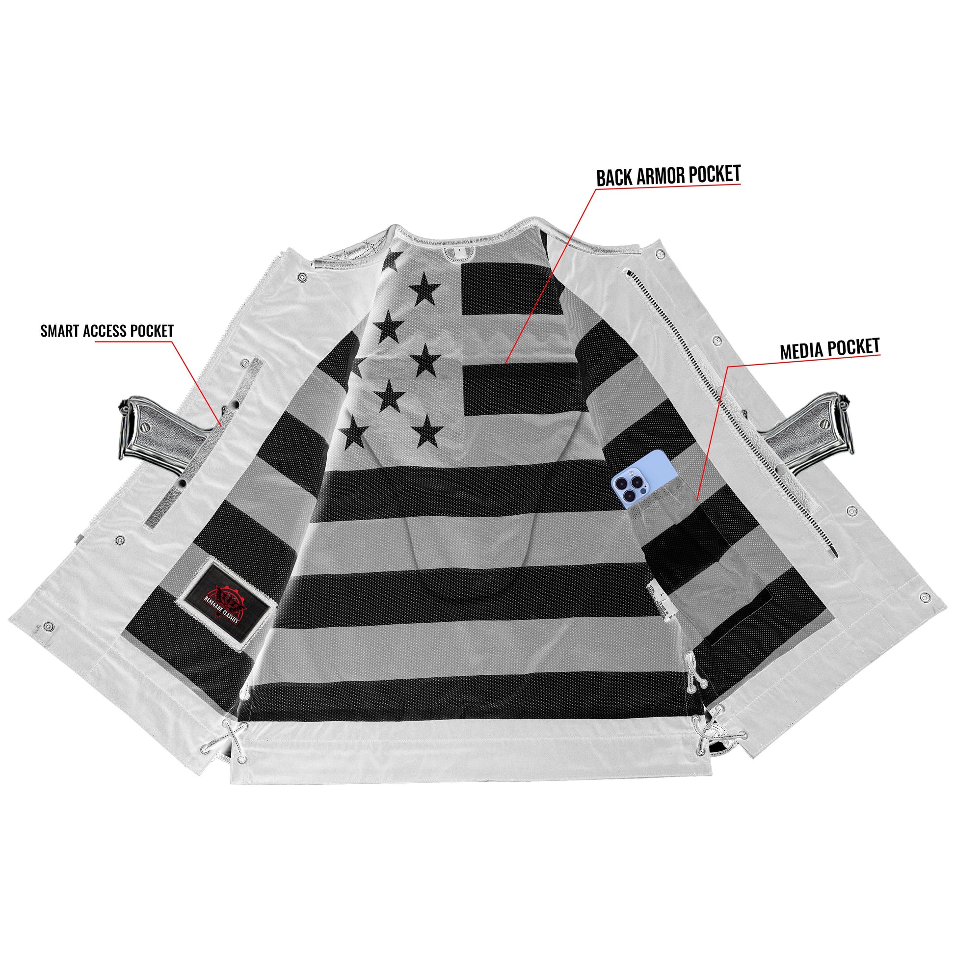 The Throtlex is more than a vest; it's a rider's identity. Made from durable perforated leather, it features a diamond-stitched yoke, side lacing for a custom fit, and patriotic lining that pays tribute to the American spirit. Whether you're cruising highways or parked at a rally, Throtlex delivers attitude, comfort, and function. This is biker gear built for the bold.